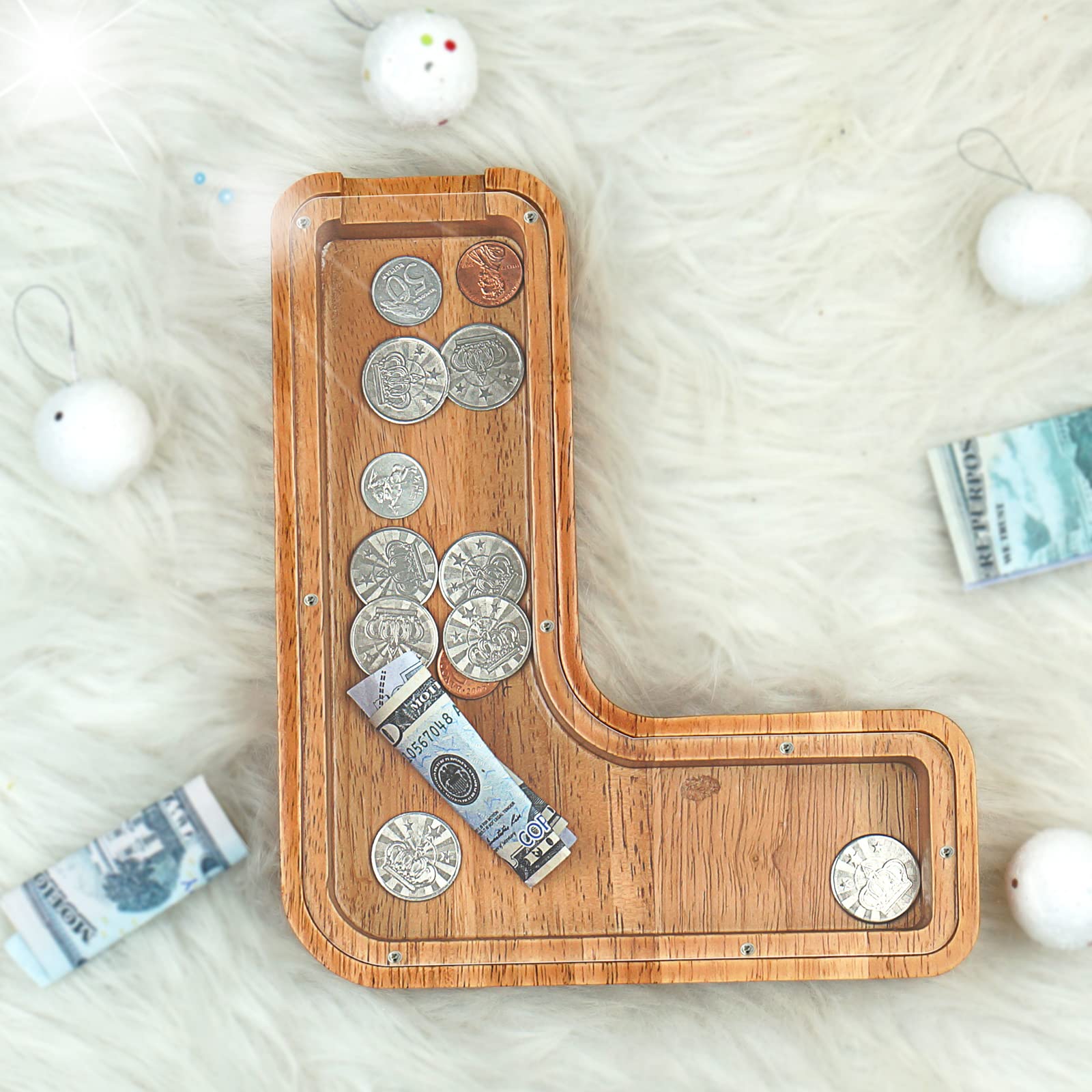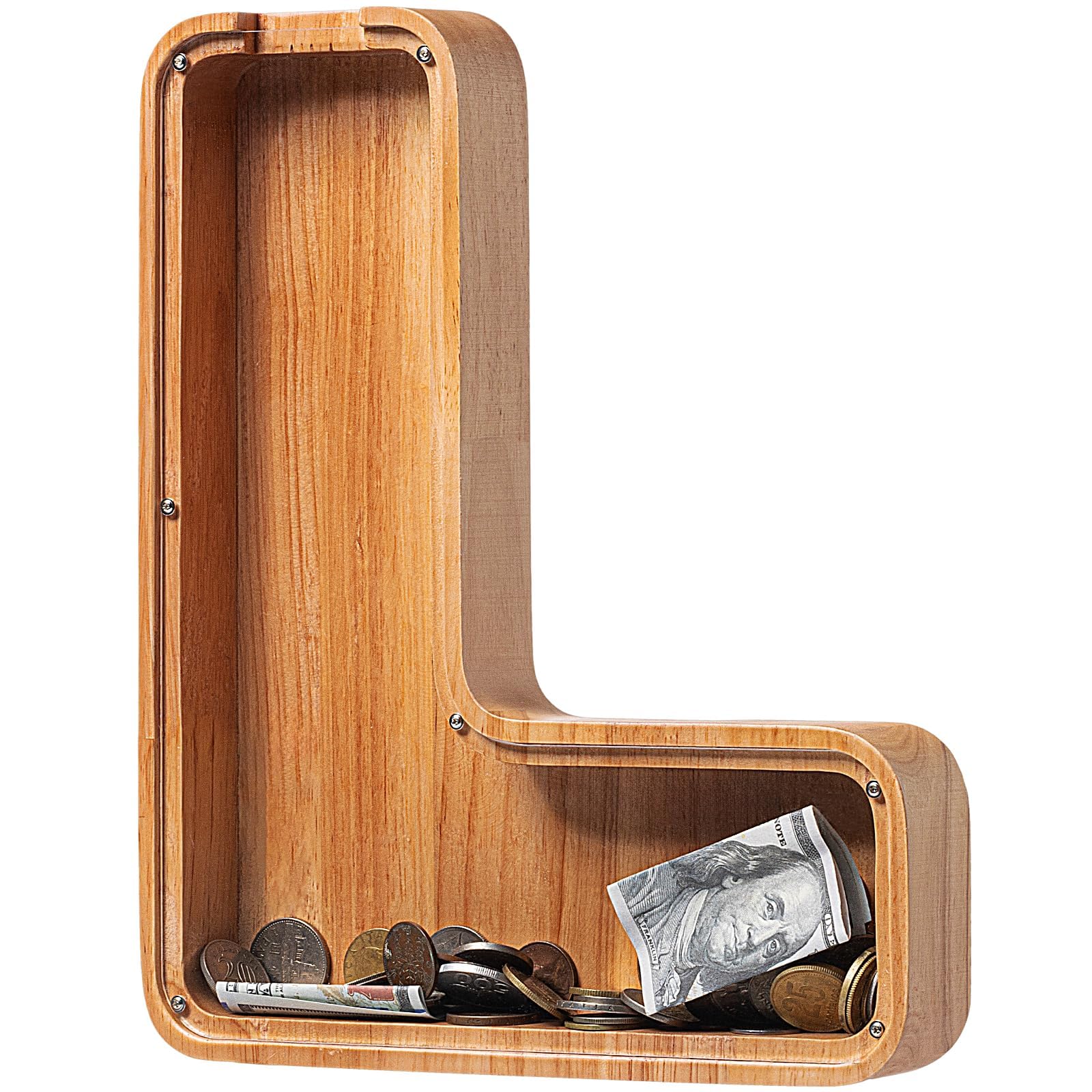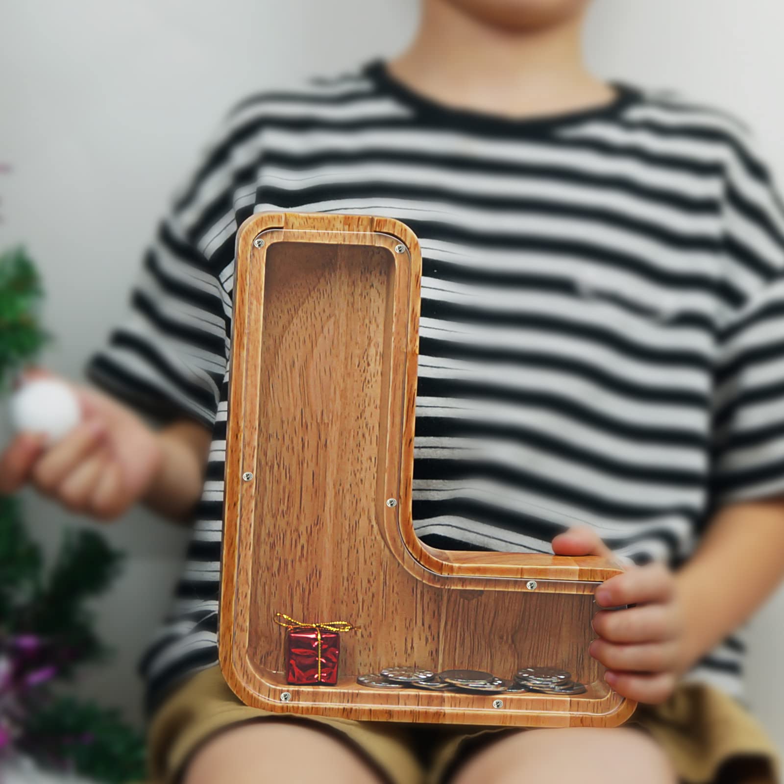 Piggy Bank For Kids Boys Girls, Large Personalized Wooden Letter Piggy Bank With Cut-Out Design, Alphabet Letter Coin Banks, Money Savings Box, Wooden Bank For Kids Creative Gift For Real-Money(L)
