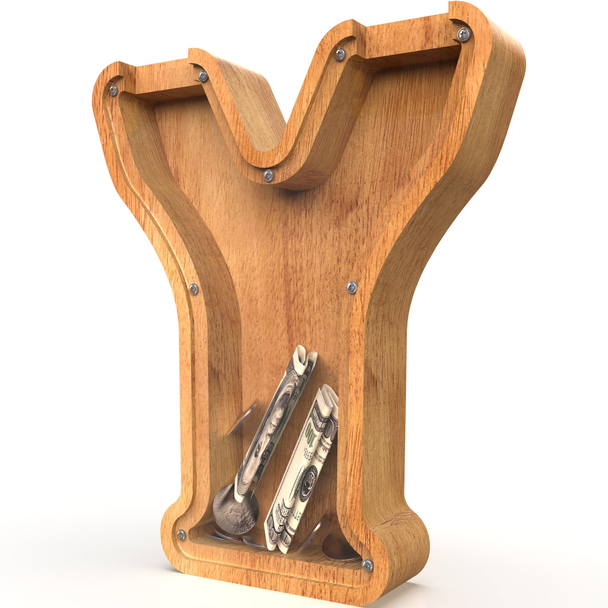 Piggy Bank For Kids Boys Girls, Large Personalized Wooden Letter Piggy Bank With Cut-Out Design, Alphabet Letter Coin Banks, Money Savings Box, Wooden Bank For Kids Creative Gift For Real-Money(Y)