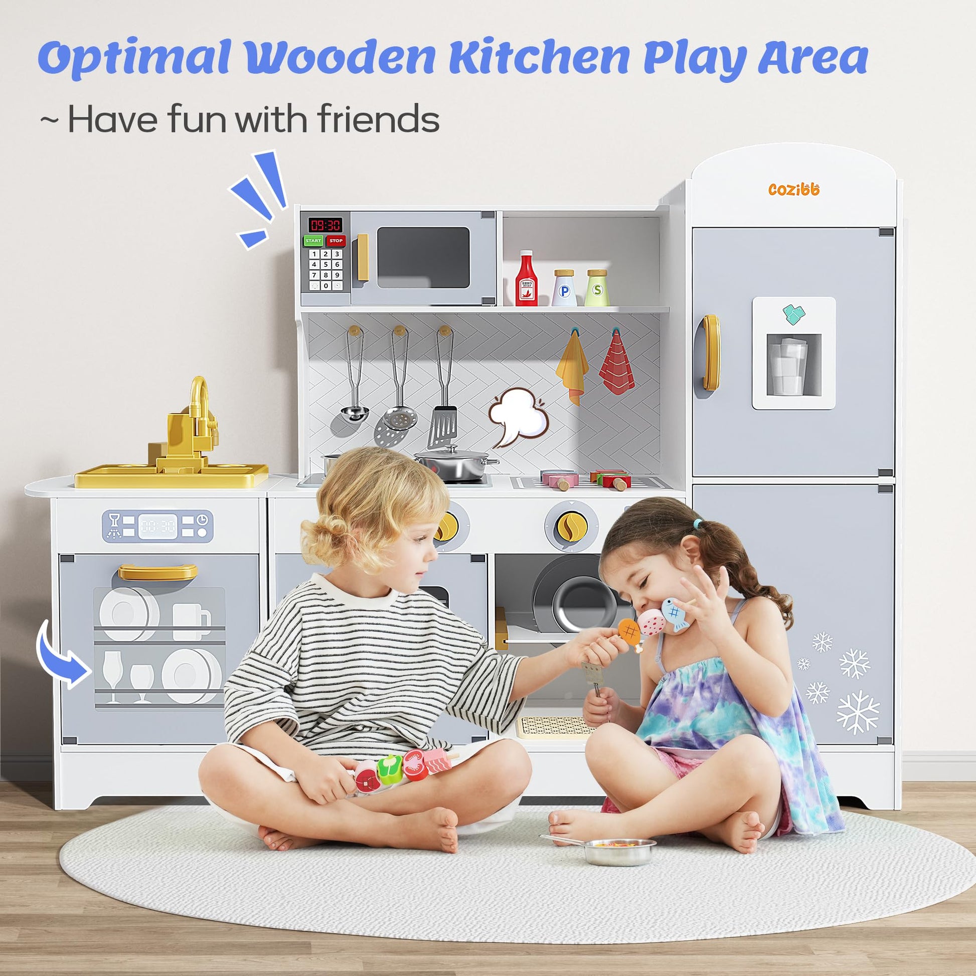 View comparePlay Kitchen For Kids, Wooden Play Kitchen With Toy Storage System, 21Pcs Accessories Included, Oven Faucet, Microwave, Ice Make