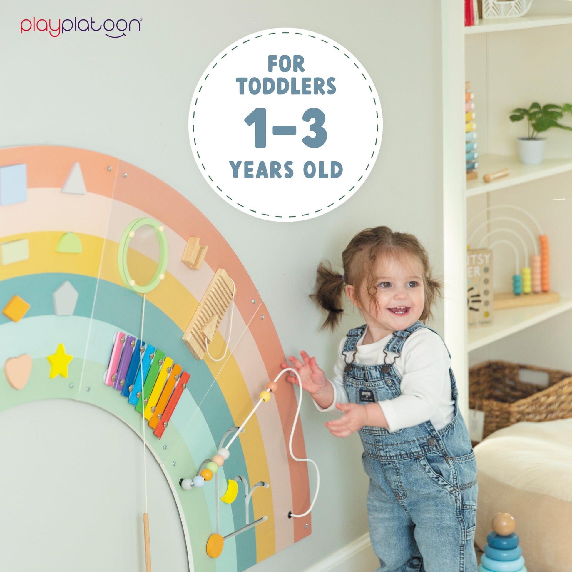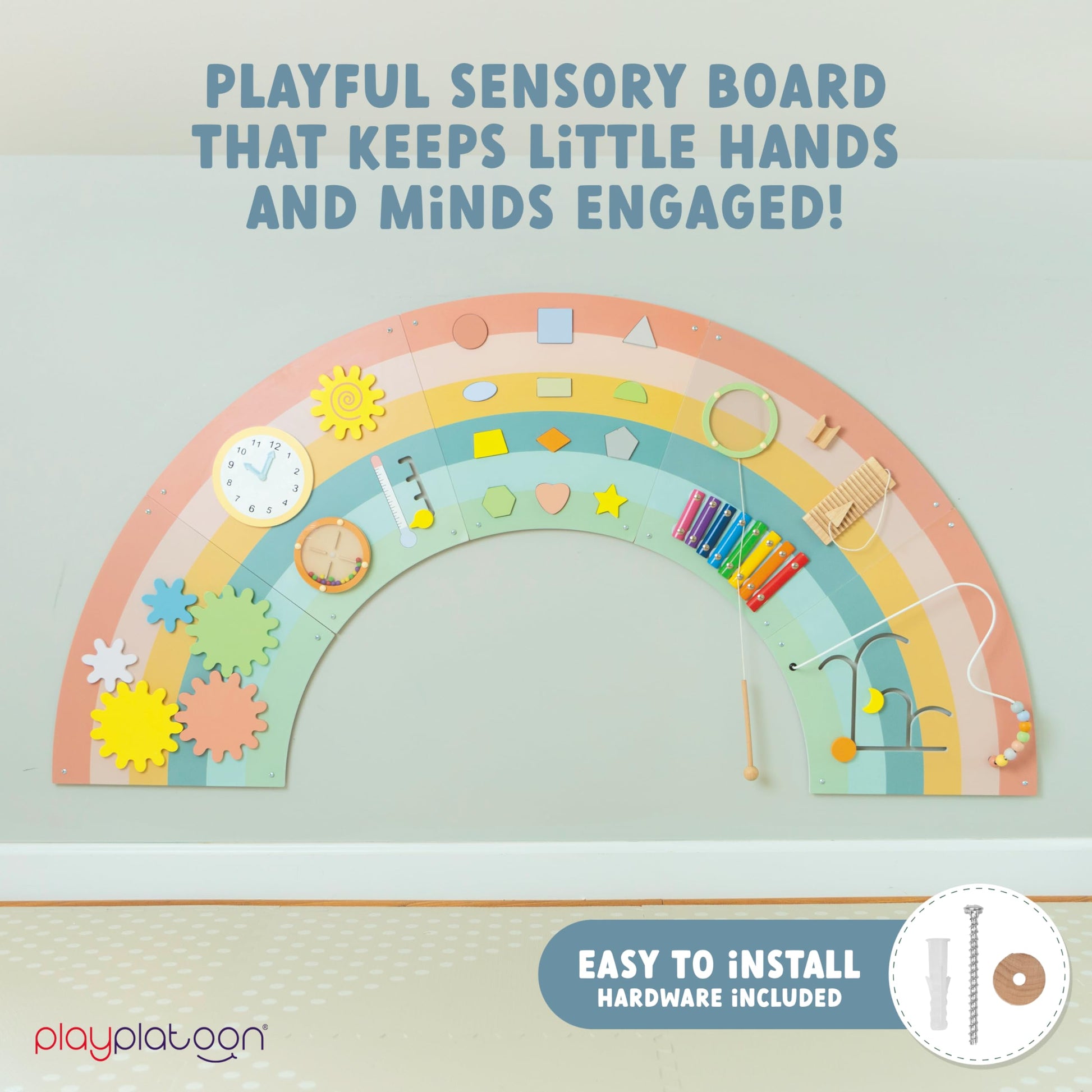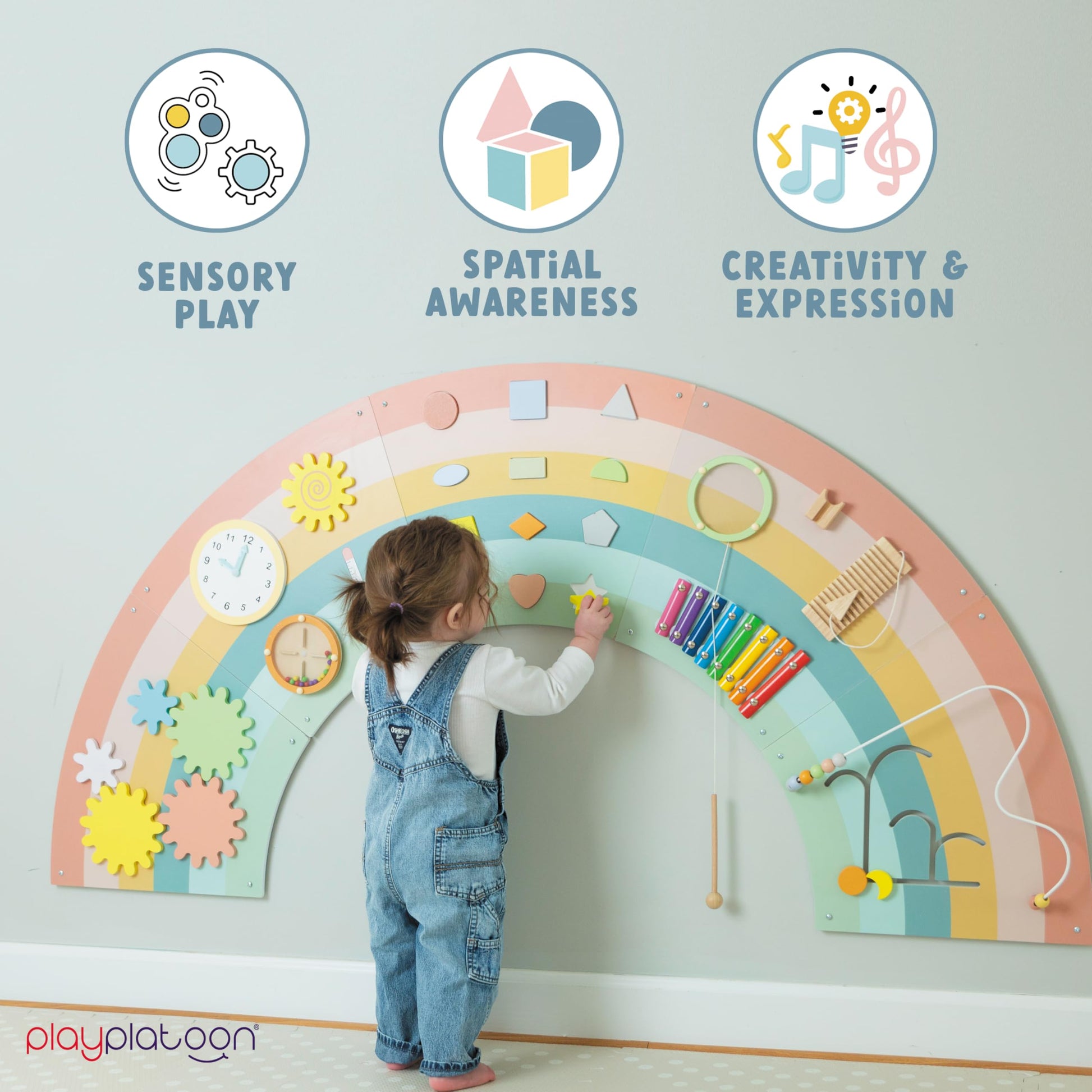 Play Platoon Sensory Wall Panel - 64x32 Rainbow Wooden Activity Board for Toddlers 1-3, Montessori Busy Board with 11 Fun Activities