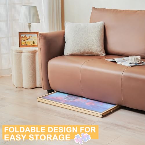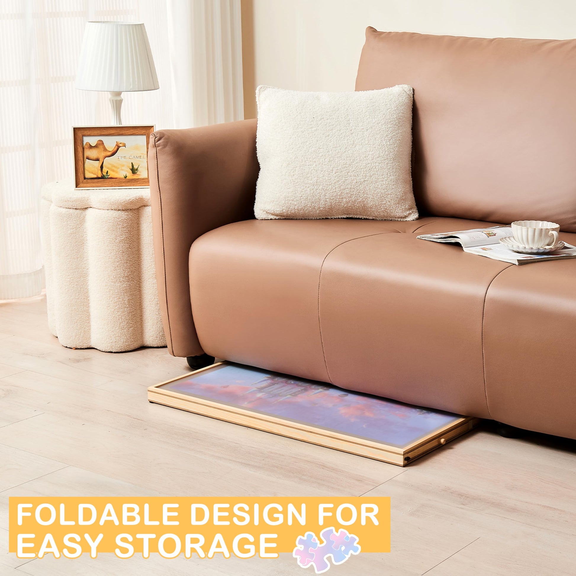 The Puzzle Board, Rotating Puzzle Board with 4 Drawers and Cover, Wooden Puzzle Board for Adults is a high-quality jigsaw board perfect for anyone who loves puzzles. - High-quality jigsaw board made of pine wood and medium density fiberboard for durability. - Rotary design for easy access to all parts of the puzzle. - Large working area of 22 x 30 inches, suitable for most 1000 piece puzzles. - 4 drawers for convenient organization and storage of puzzle pieces. - Translucent plastic cover to protect the puzzle from dust, water, and curious pets.
