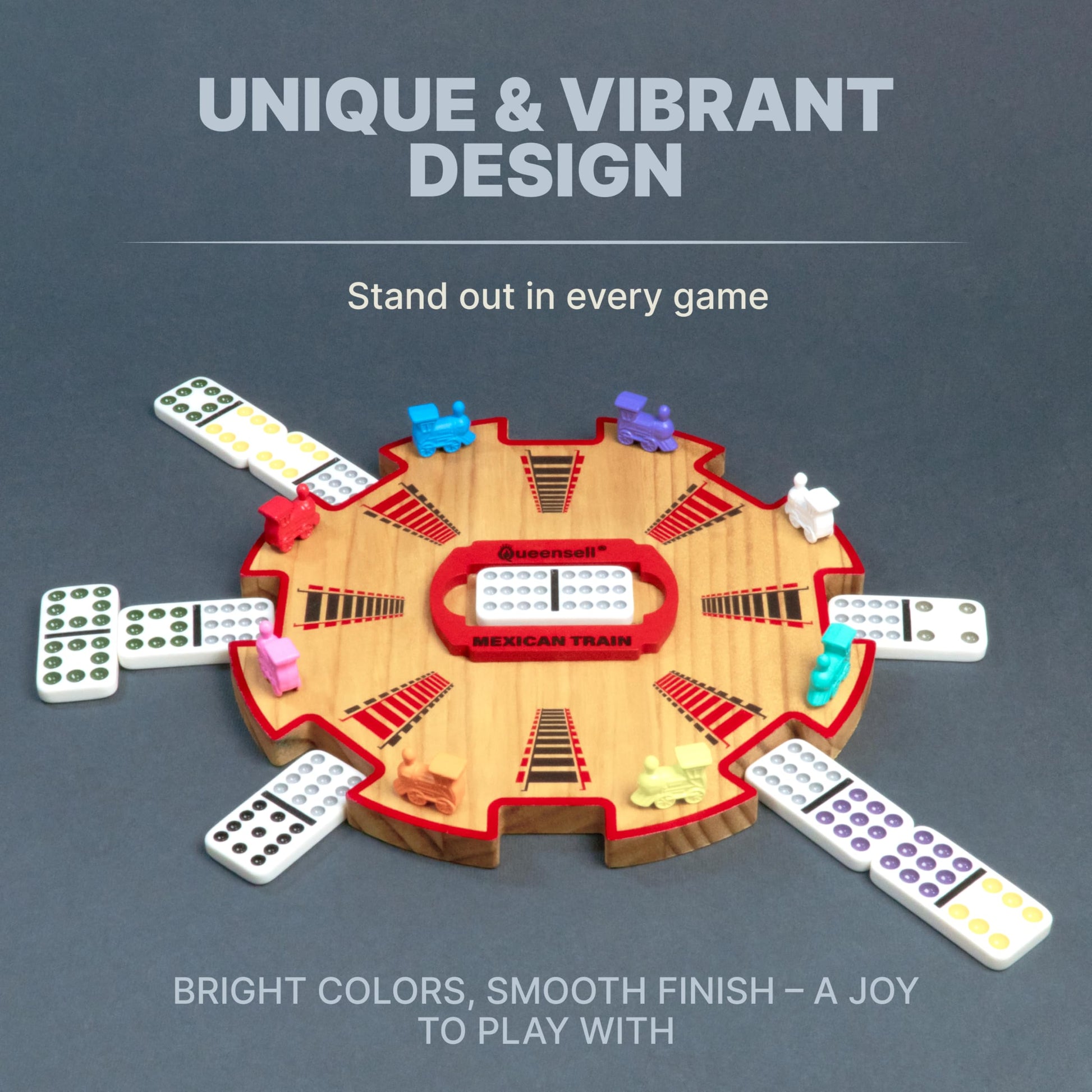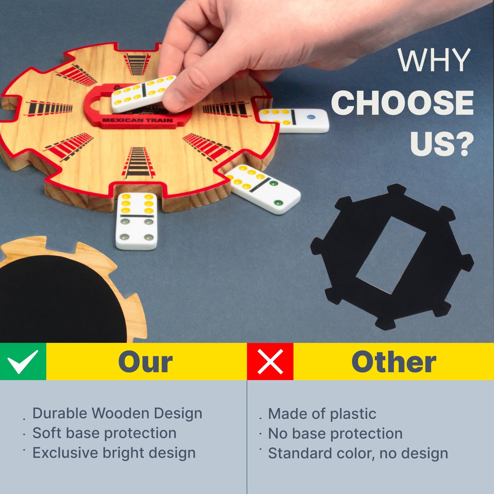 Queensell Wooden Mexican Train Hub - Mexican Train Accessories for Classic Domino Game - Mexican Train Centerpiece 7.8x7.8x0.5 i