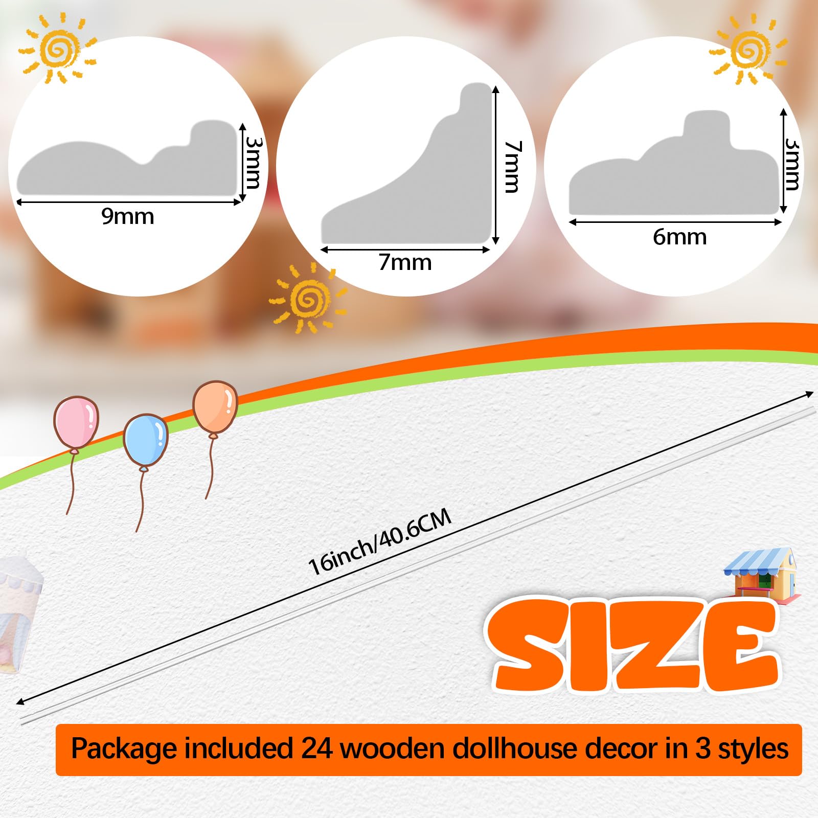 Relaxgiant 24 Pcs Miniature Dollhouse Trim Dollhouse Accessories 3 Styles On 1: 12 Scale 16'' Long Wooden Trims Finishing Corner