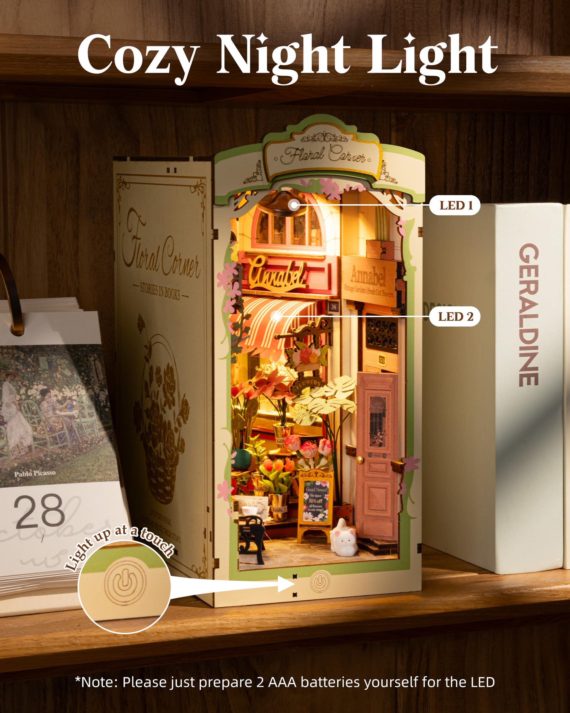 Robotime Diy Book Nook Kits, Miniature House Kit, 3D Wooden Puzzle With Led, Dollhouse Booknook Kit, Creative Bookends Bookshelf