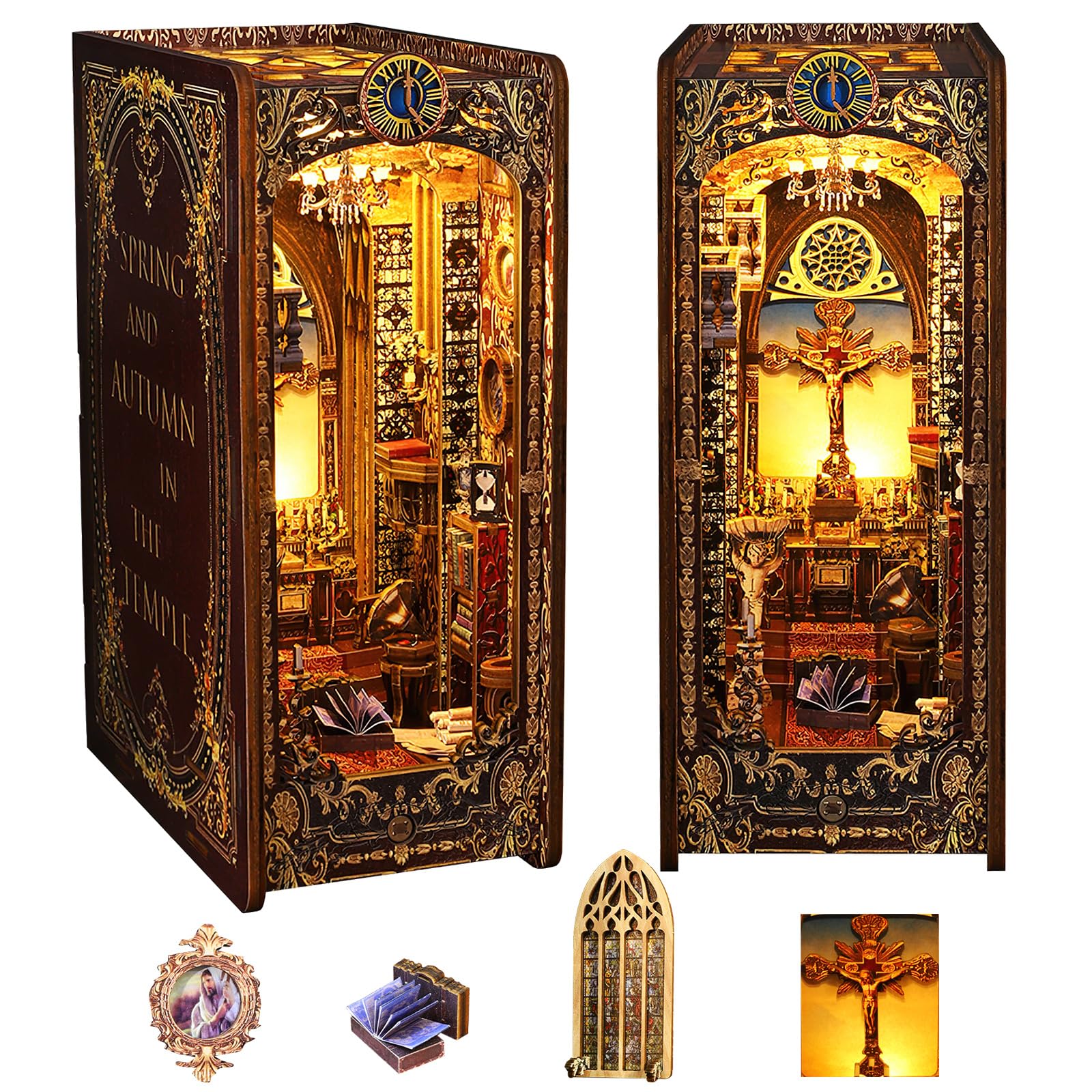 View compareSpobot Book Nook Kit Diy Bookshelf Decor Kit With Led Light 3D Booknook Wooden Puzzle Bookend Stand Miniature Dollhouse Kit Gift