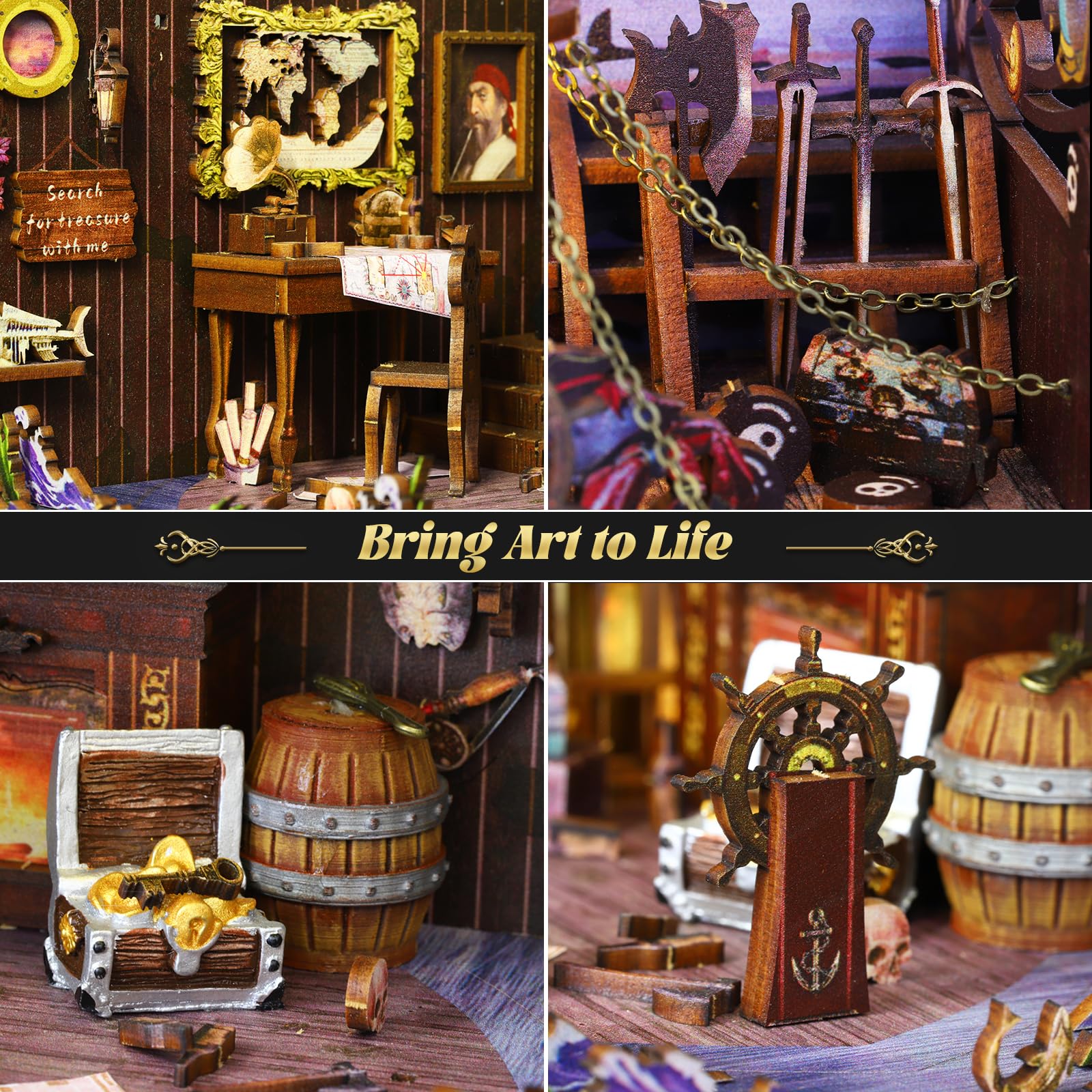 Spobot DIY Book Nook Kit Booknooks Bookshelf Insert Decor Miniature House Kits with Sensor Light 3D Puzzles Wooden Dollhouse Art