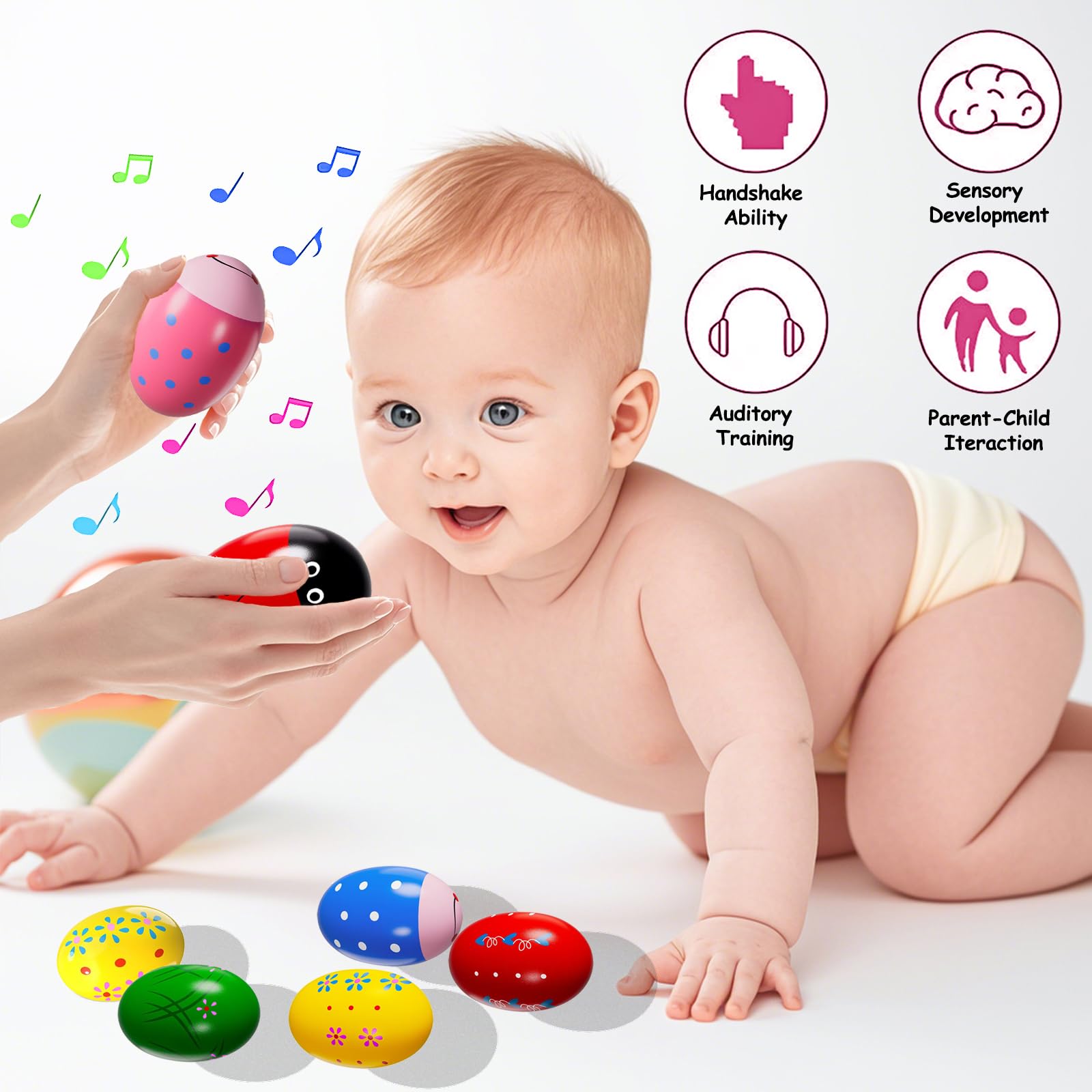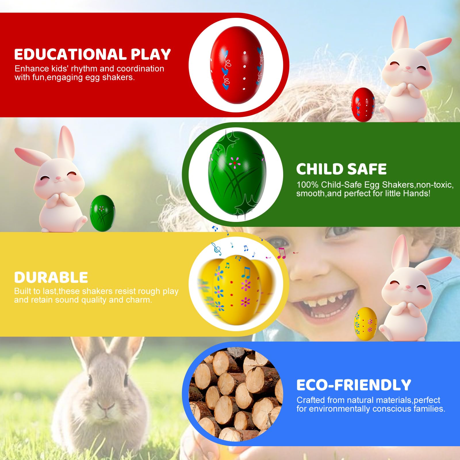 sucenance Easter Basket Stuffers, Set of 6 Prefilled Easter Eggs, Wooden Percussion Musical Shaker Egg Fillers Montessori Toy Es