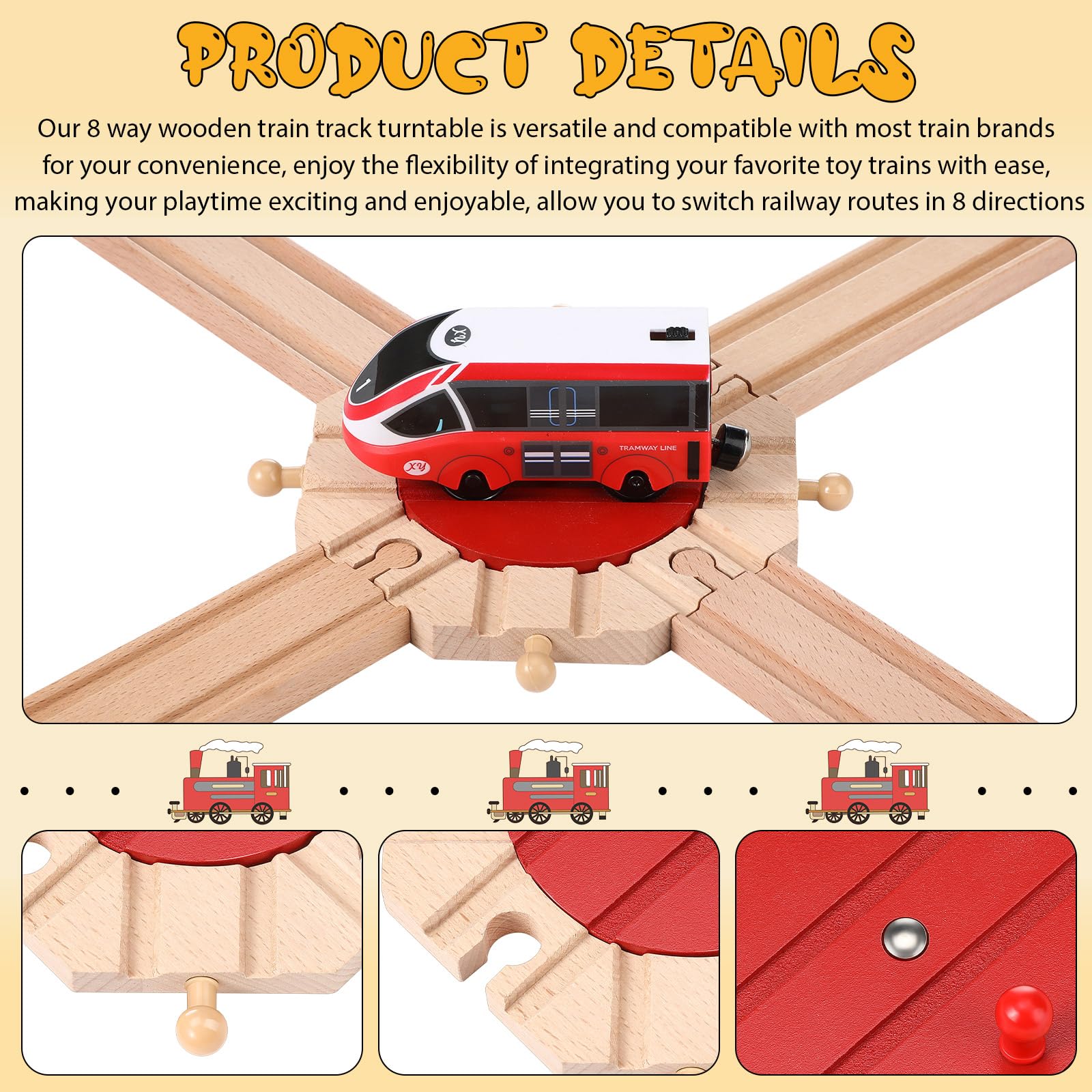 View compareSyhood 2 Pieces Wooden Train Track Expansion Packs Wooden Train Accessories 8 Way Wood Track Turntables Compatible with Most Tra