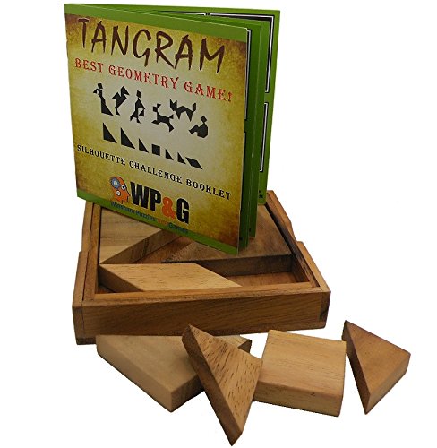View compareTangram Wooden Puzzle Geometry Game, with 48 Silhouette Tangrams Challenge Booklet