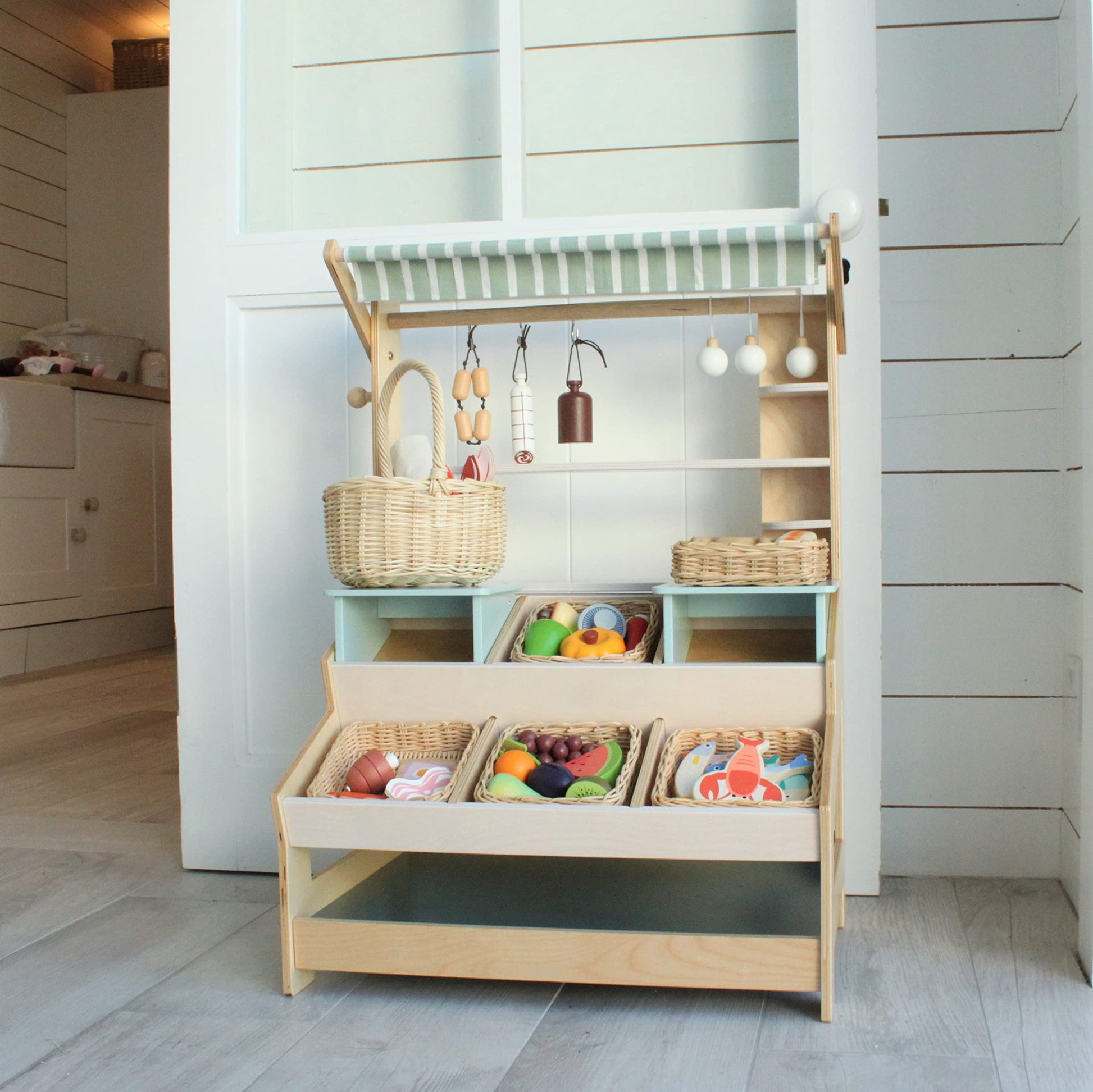 Introducing the Market Basket Collection - Handcrafted Wicker Baskets Filled with Foodie Fun! Choose from the Bread Basket, Seafood Basket, Veggie Basket, Fruity Basket, or Charcuterie Basket - or collect them all to create the ultimate market and kitchen play experience for your little one! With the Market Basket Collection, let the culinary adventures begin! Fruity Basket - Indulge in a burst of fruity goodness with our Fruity Basket! This lovely wicker basket is brimming with delightful wooden fruits, including a bunch of grapes, half a kiwi fruit, a slice of watermelon, a pear, plum, and tangerine. Watch as your child engages in imaginative play, creating vibrant fruit salads and sweet treats.Each Market Basket in this collection is handcrafted with care and designed to inspire endless hours of imaginative play. These wicker baskets are not only beautifully made but also provide a sustainable and eco-friendly option for playtime fun. Nurture your child's creativity, spark their curiosity, and ignite their passion for food and cooking. Whether they're playing chef, shopkeeper, or customer, the Market Basket Collection offers a world of exploration and discovery.