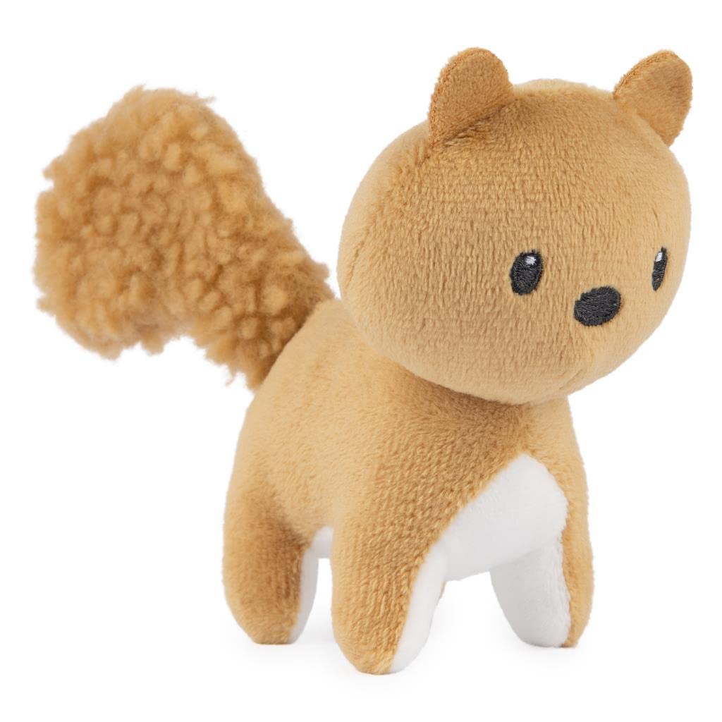 The My Woodland Friends playset is a whimsical, modern way for future forest explorers to play and engage in tactile fun with different fun sounds and texture! This adorable five-piece playset contains four different sensory-stimulating plush toys, all designed with special features for extra woodsy fun: the soft plush fox and squirrel both make squeaker sounds when squeezed, the teal and yellow snail makes a satisfying crinkle, and the acorn rattles with a gentle chime. Even the mushroom house, which is decorated with colorful garden illustrations, opens its door and transforms into a carrying case, complete with a soft handle perfectly sized for little hands. This set is a perfect way to encourage baby to touch, discover, and fall in love with nature - even with on-the-go playtime! Just like the rest of the innovative Play Soft collection, this 5-piece plush playset contains multiple ways to keep baby engaged through sensory play, encouraging exploration while helping develop their dexterity and hand-eye coordination.