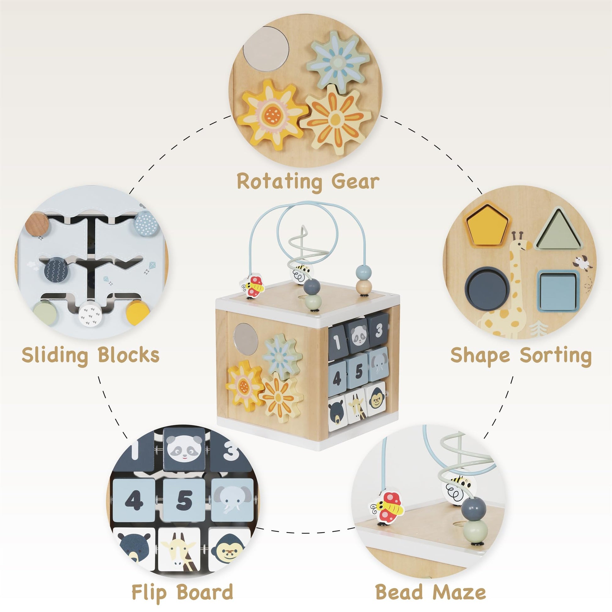 touch us Wooden Activity Cube, 6-in-1 Montessori Toys for 1+ Year Old Boys & Girls, Educational Learning Toys for 1 2 3 Year Old