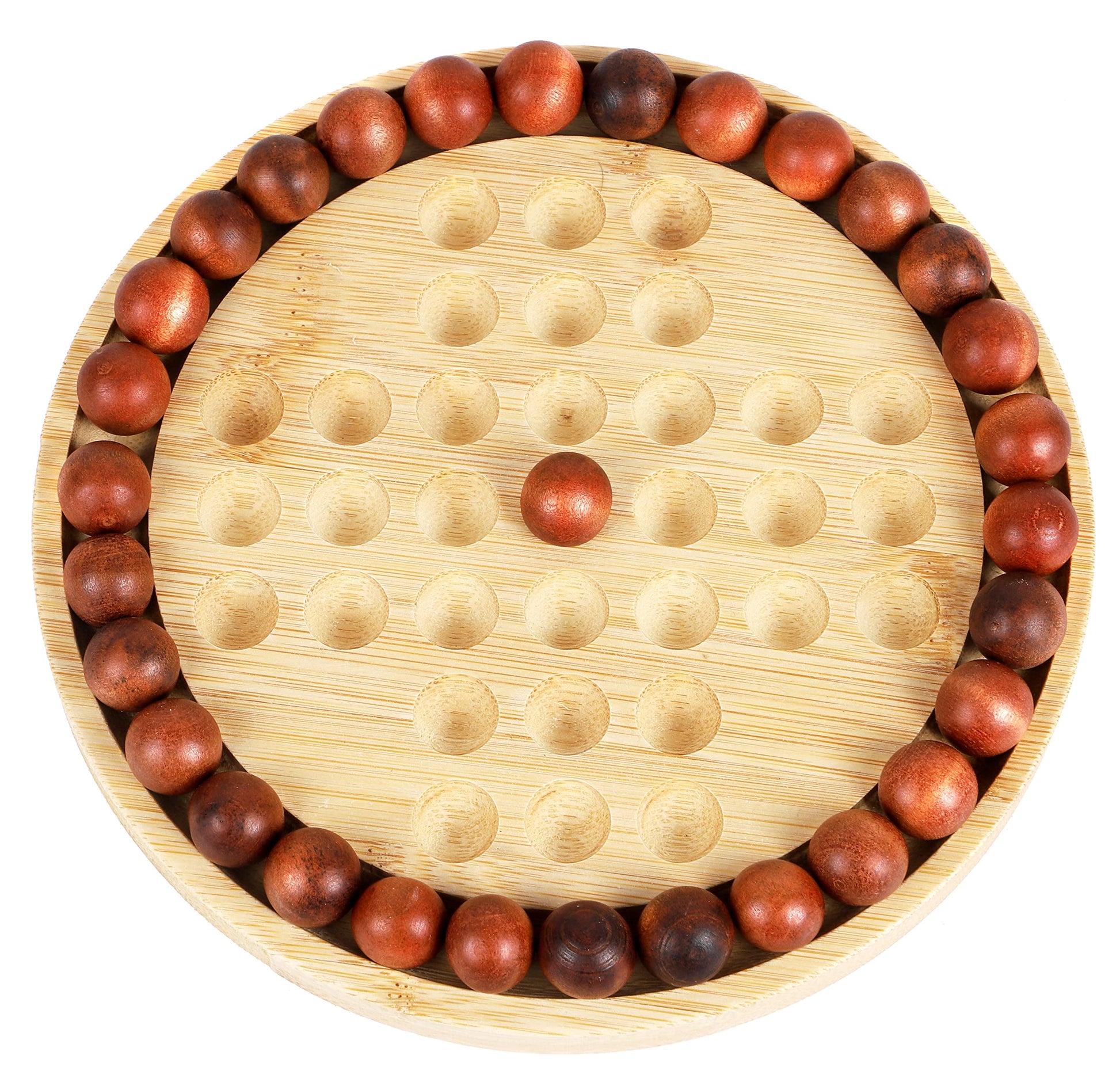 TOWO Wooden Solitaire Game -Peg Solitaire Puzzle Toy - Classic Board Game Marble Chess Mind Game 22.5 CM 8.8 Round Board with