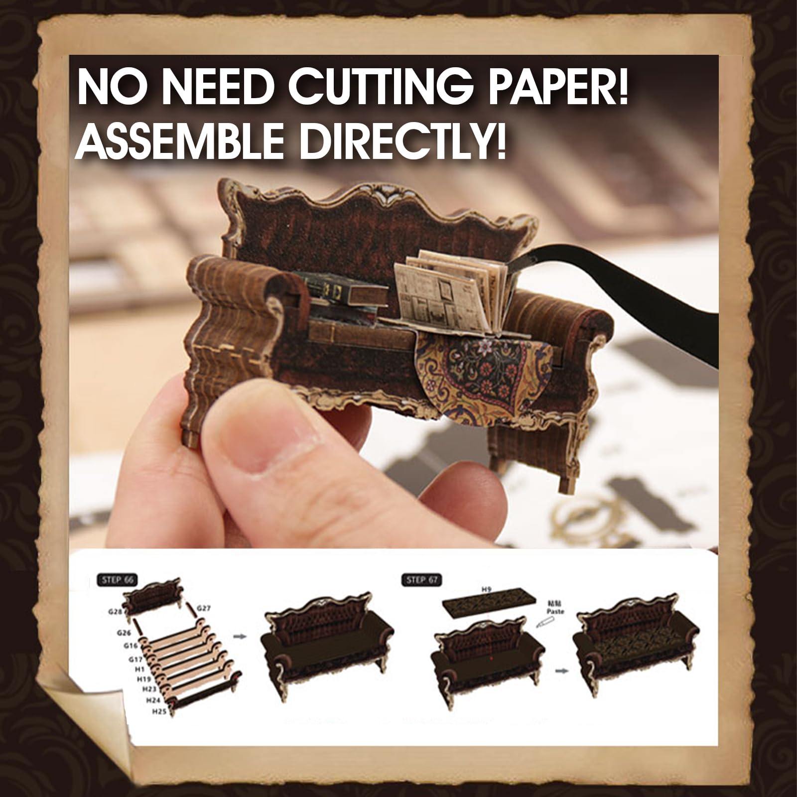 Vaki Vaki Book Nook Kit with Dust Cover & LED Light, DIY Miniature House Kit for Birthday, 3D Wooden Bookends Puzzle, Bookshelf