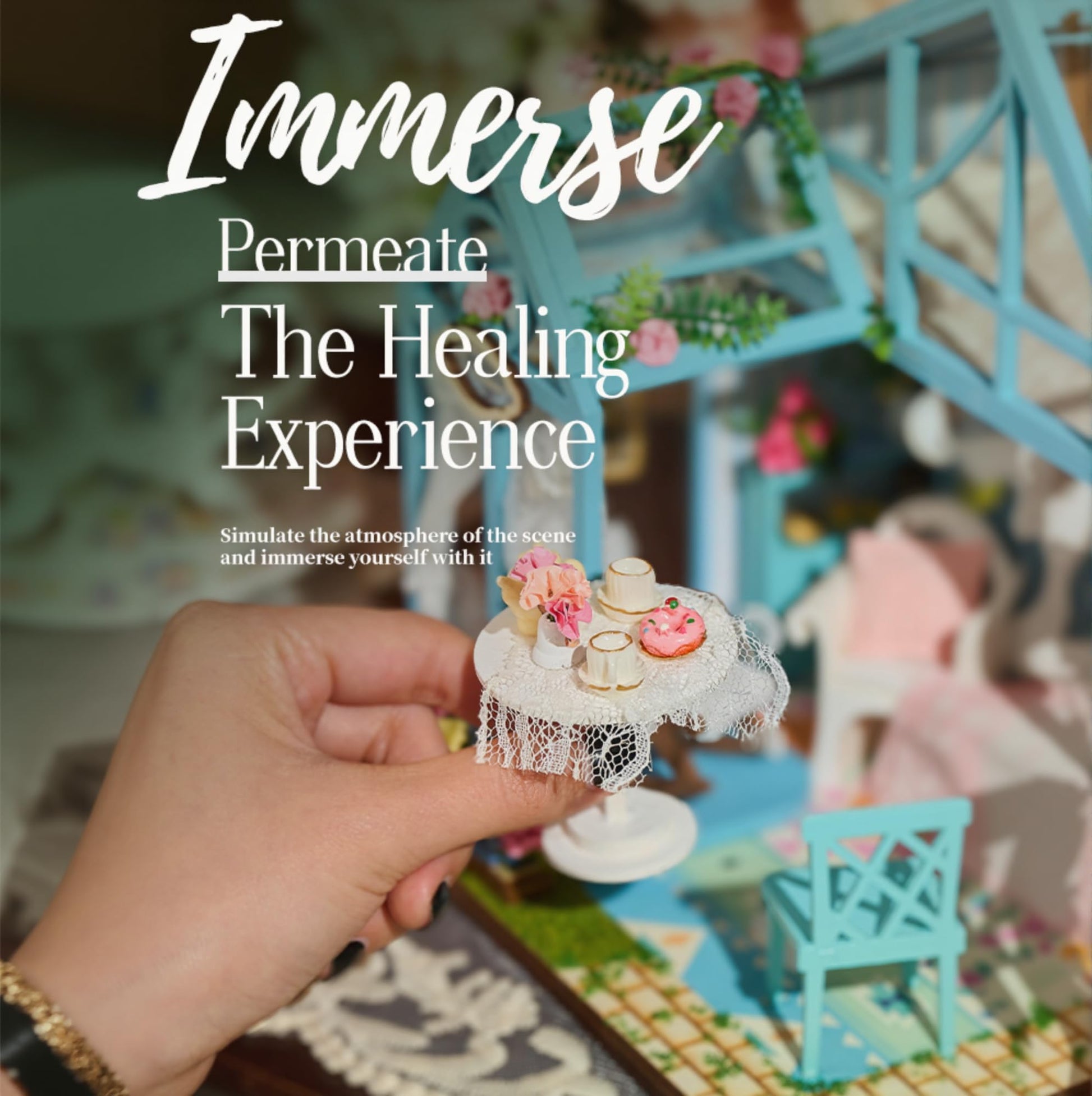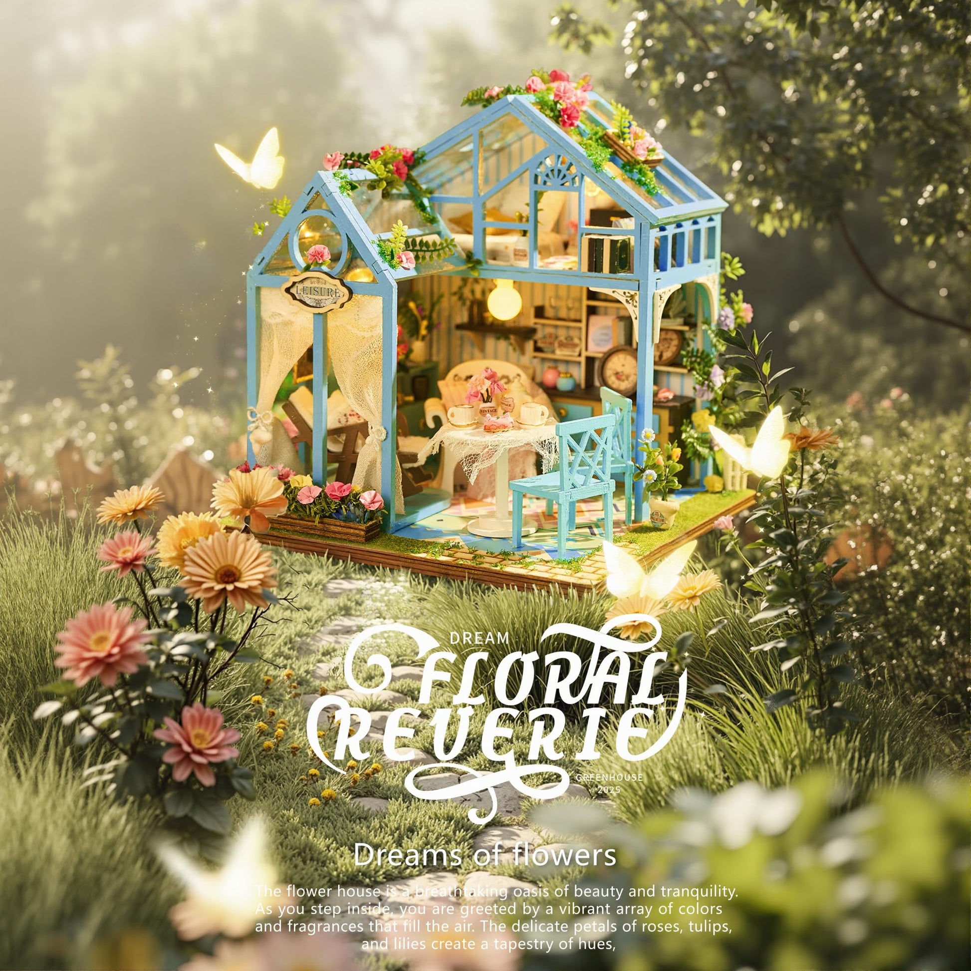 Vaki Vaki Miniature House Kit with LED Light, Book Nook Kit with Cover for Birthday, 3D Wooden Bookends Puzzle, Bookshelf Decor for Adults, Teens, Beginners - Floral Reverie