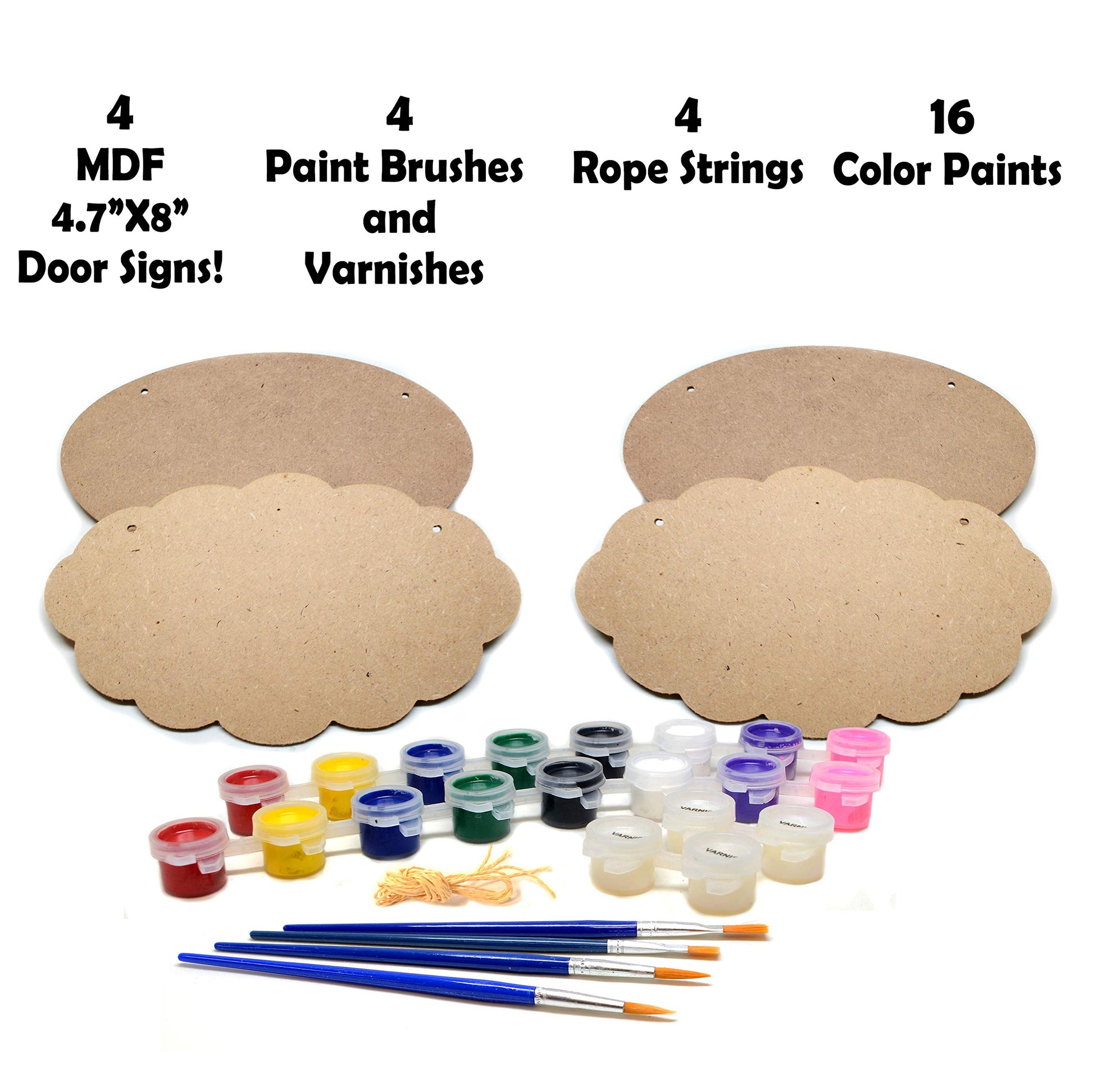 VHALE Paint Your Own Door Sign, 4 Sets of MDF Wood Door Sign (4.7 x 8 inch) with Rope Strings, for Bedroom Hanging Plaque Wall D