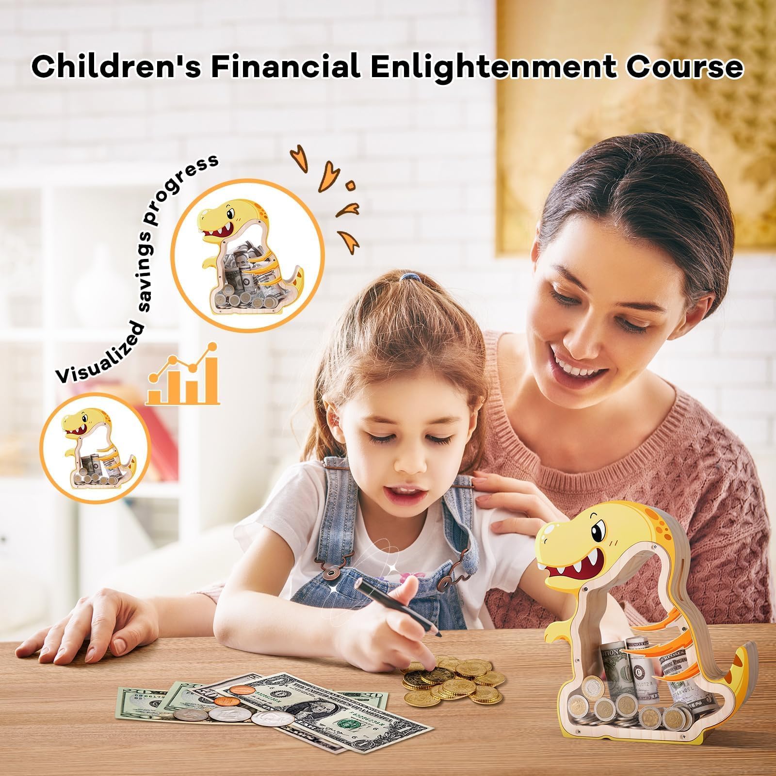 View compareWooden Dinosaur Piggy Banks For Kids Money Coin Bank, T-Rex Unbreakable Piggy Bank Diy Personalized Kids Safe Money Box With Sti