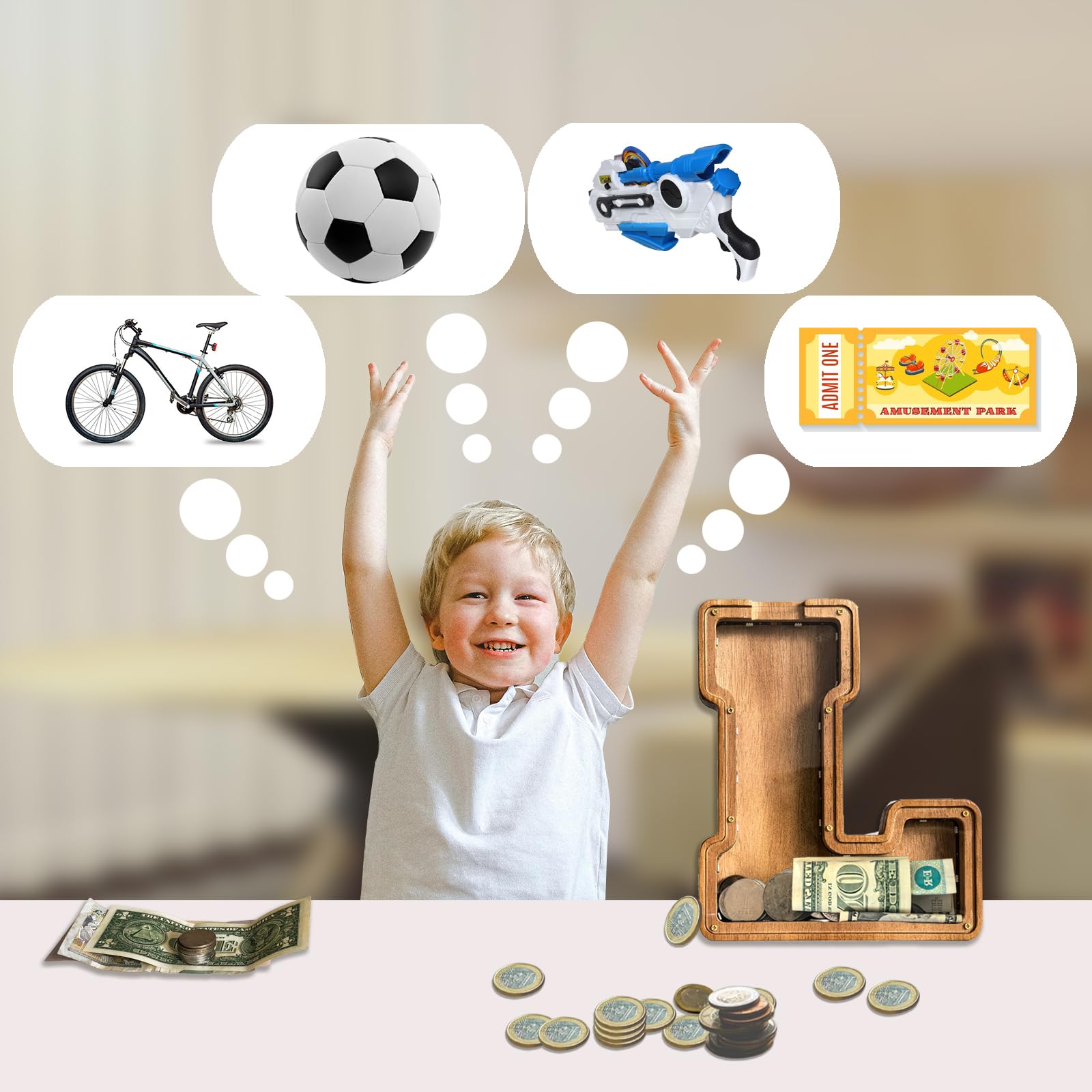 View compareWooden Letter Piggy Bank for Kids,9inch Kids Money Bank with LED Lights, Alphabet Coin Jar(A-Z), Birthday Gift for Kids, Toys fo