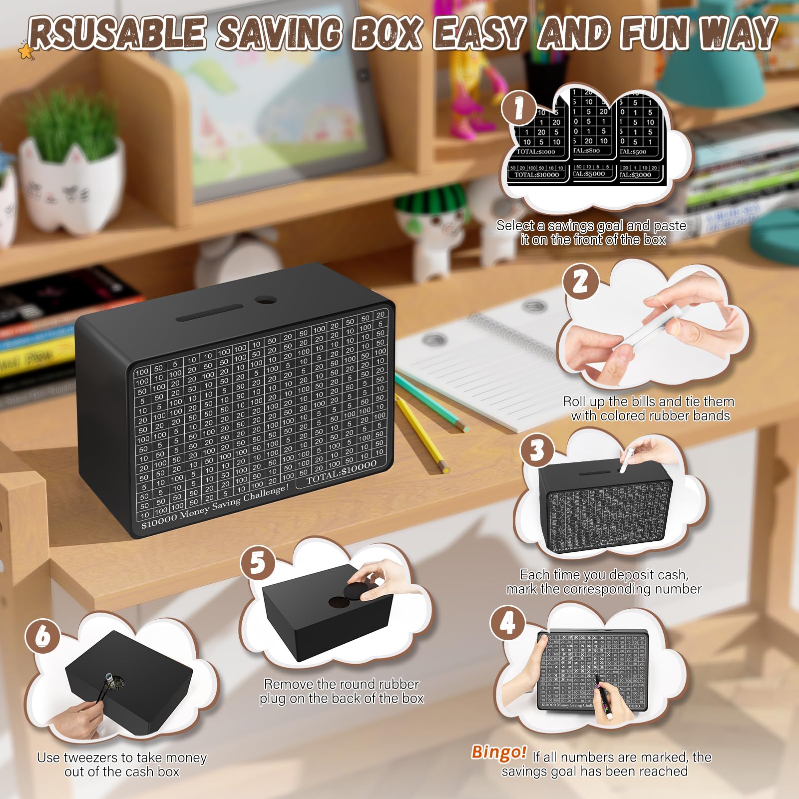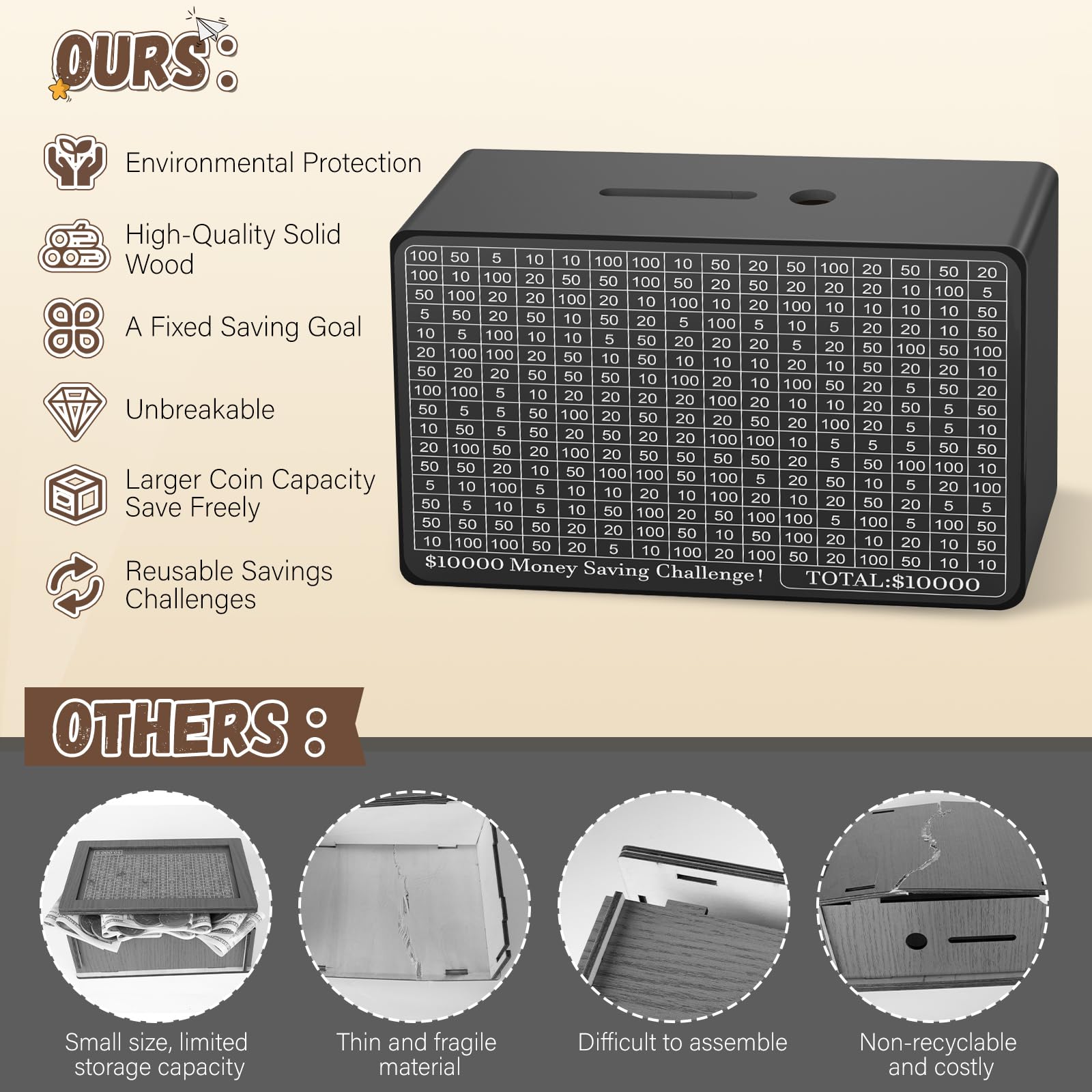 Wooden Money Saving Box, Cash Vault Savings Box For $10000 $5000 $3000 $1000 $800 $500 Target Money Saving Challenge, Reusable M