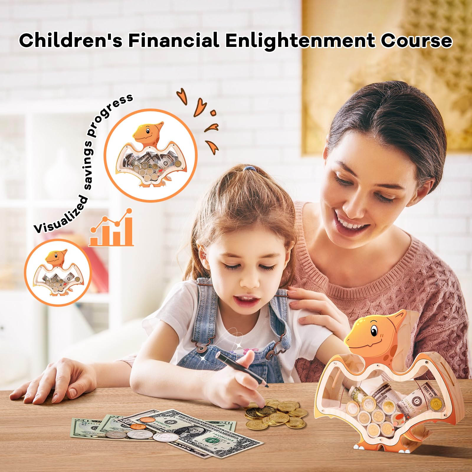 Wooden Piggy Banks For Kids Girls Boys Dinosaur Pterosaur Money Bank Toddler Indestructible Piggy Bank Diy Personalized Customiz