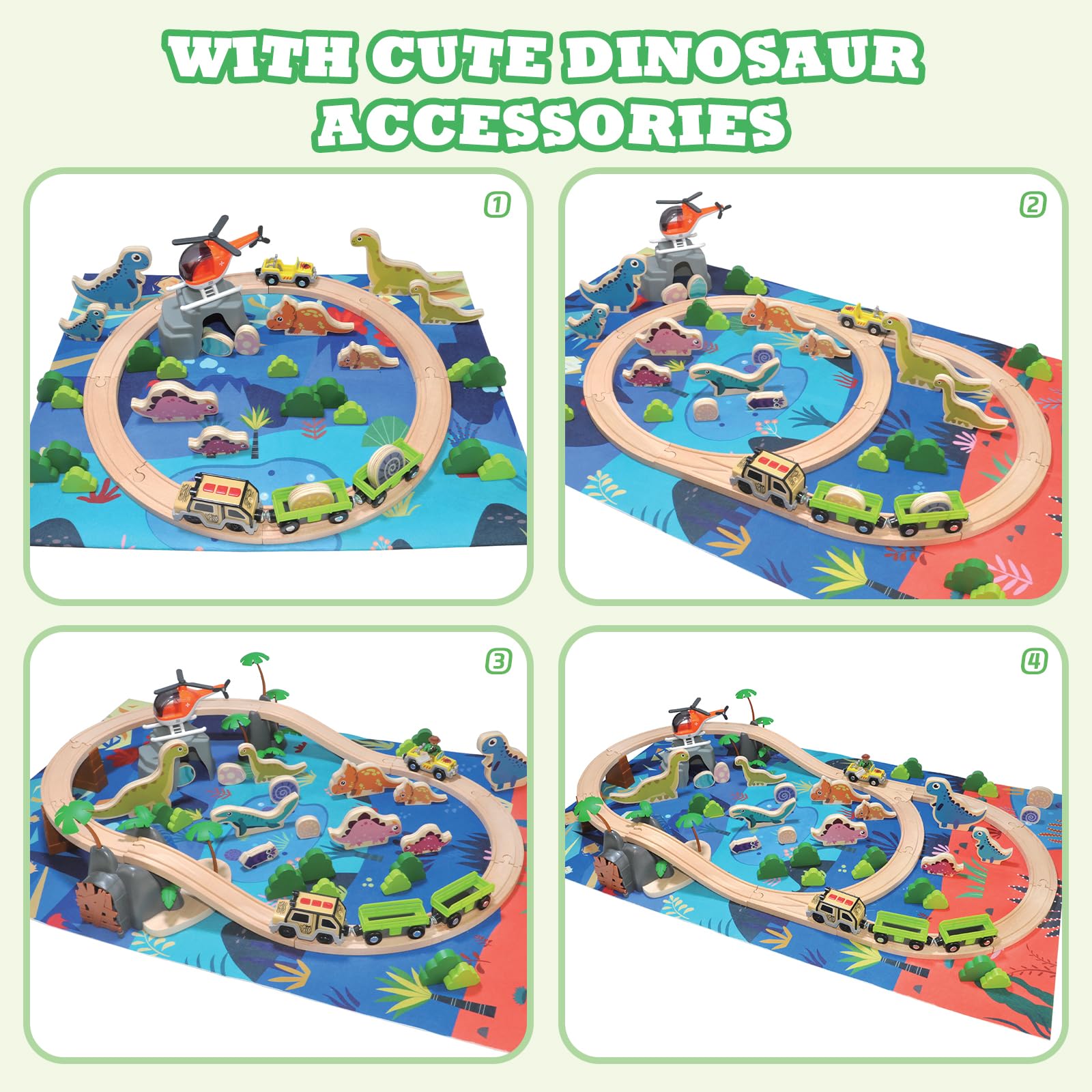 View compareWoodenedu 80Pcs Wooden Train Set, Dinosaur Wooden Train Track Set, Wood Toy Train Set For Toddlers 2-4, Train Toys For Toddlers