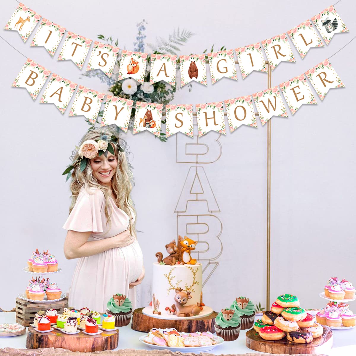 Woodland Baby Shower Banner Garland, Forest Animal Creatures Bunting for Its a Girl Woodland Baby Shower Want your baby shower different and special? Then you could not miss this lovely banner, it will definitely hit at your party, package includes: 1 woodland ITS A GIRL BABY SHOWER banner