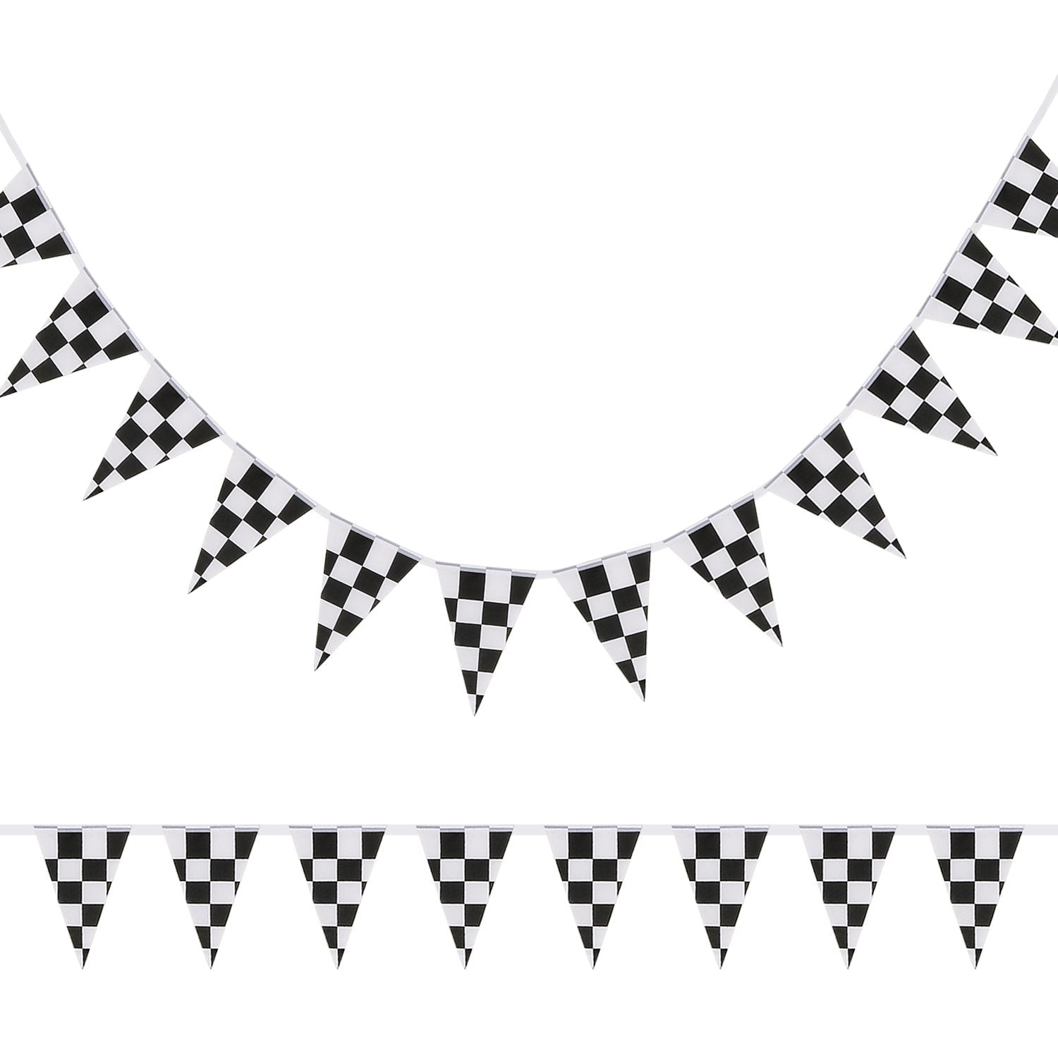 10 Meters Checkered Pennant Banner Racing Flag Party Flag Banner Accessory for Race Theme Birthday Party Decoration