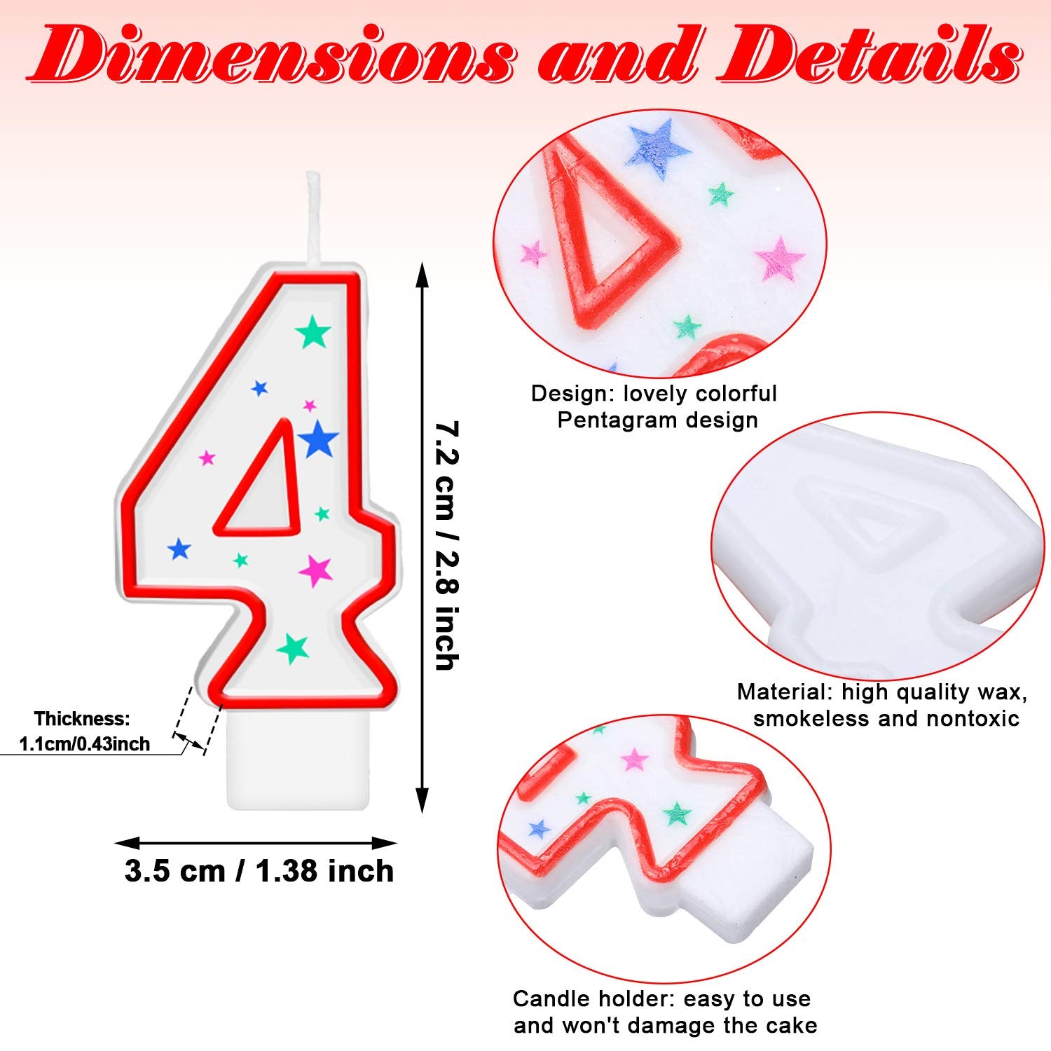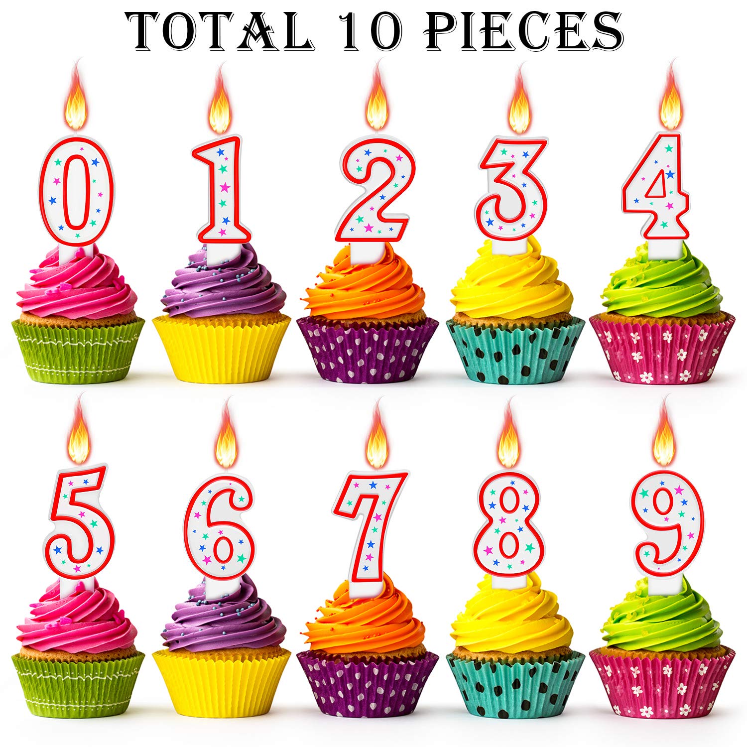 10 Pieces number candles birthday cake candles numeral 0 - 9 candle cake topper decoration with colorful star decorations for birthday wedding anniversary reunions theme party Features:Easy to match: You can mix these number candles to create most age combination, match various meaningful days and celebrate with your family and friends together. Fits most occasions: Suitable for birthday, baby showers, anniversaries, retirement parties and so on, create more warm and festival atmosphere, bring you memorable and meaningful party.Specification:Material: quality waxColor: as pictures shownSize: as pictures shownPackage includes:10 x Number candlesWarm tips:Please keep the candle away from the fire when not in use, when burning, keep away from children.Not edible, please keep away from children and avoid eating wrongly.