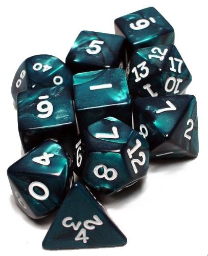 KOP10074 Emerald Pearlized Polyhedral Dice Set - 10pc Set in Tube by Koplow Emerald Pearlized Polyhedral Dice Set 10pc Set in TubeSet includes, 4 - D6, 1ea D4, D8, D10, D12, D20, and DT10.