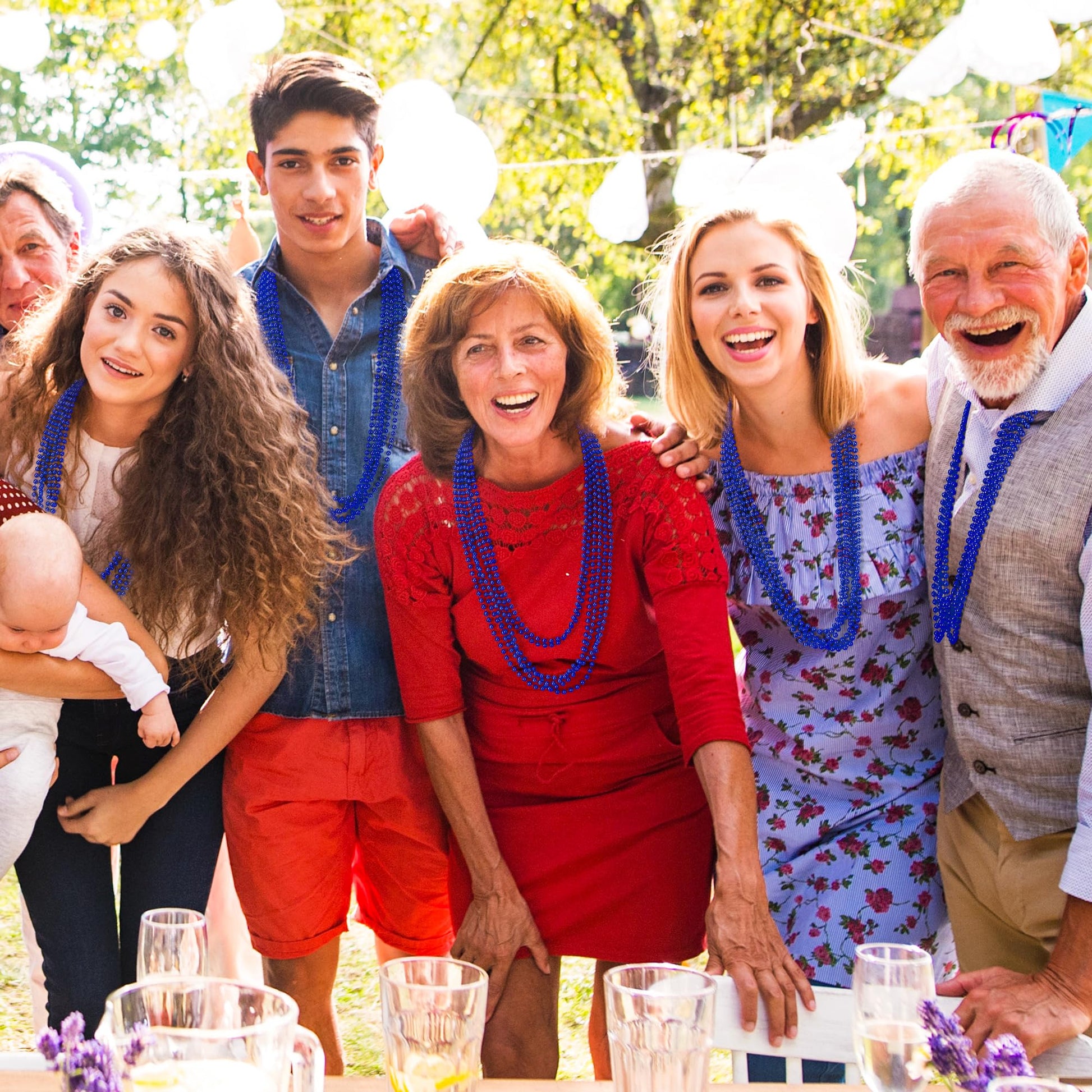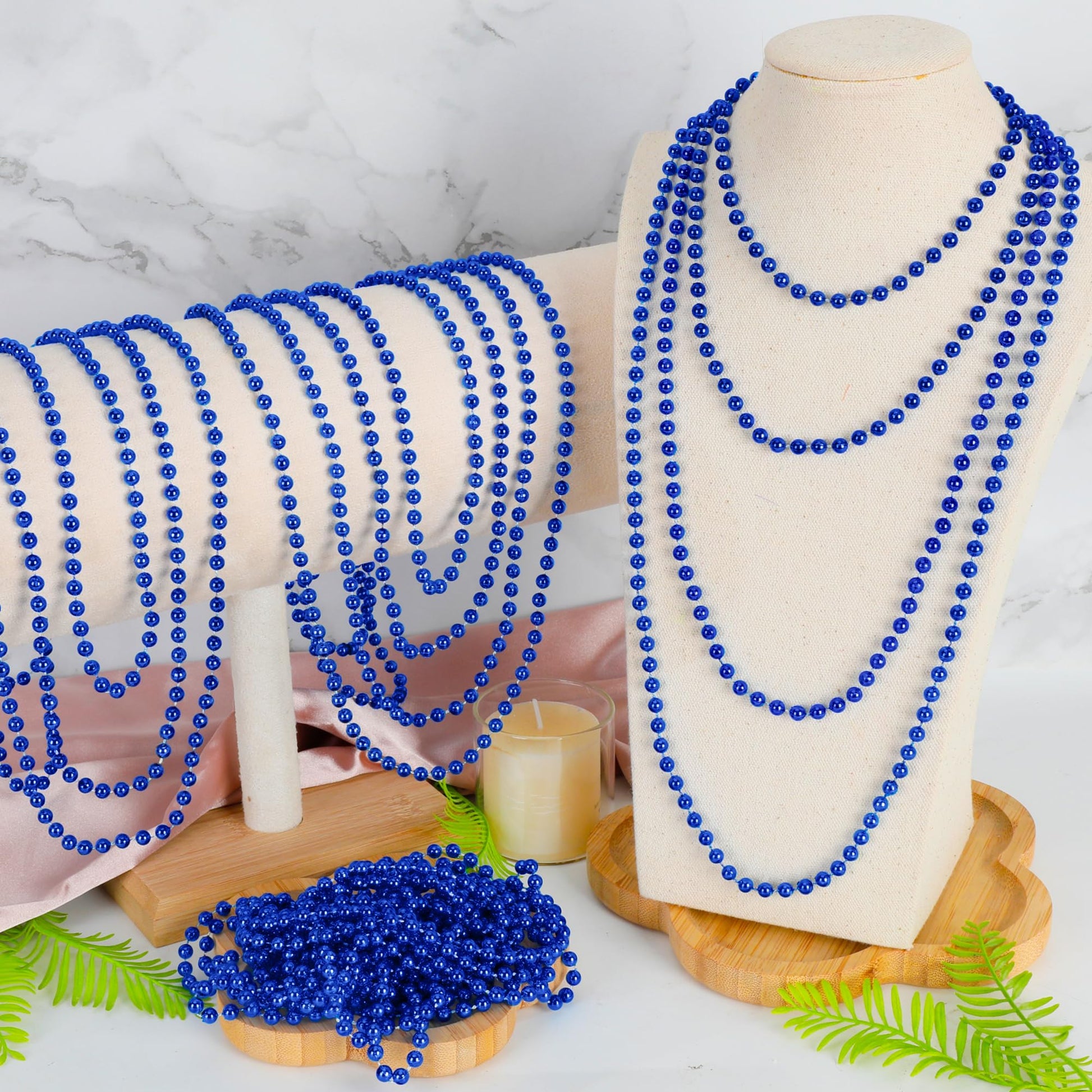 View compare100 Pcs Blue Mardi Gras Beads Necklaces, 33'' Metallic Patriotic Carnival Beaded, 4Th Of July Costume Necklaces Bulk, Mardi Gras