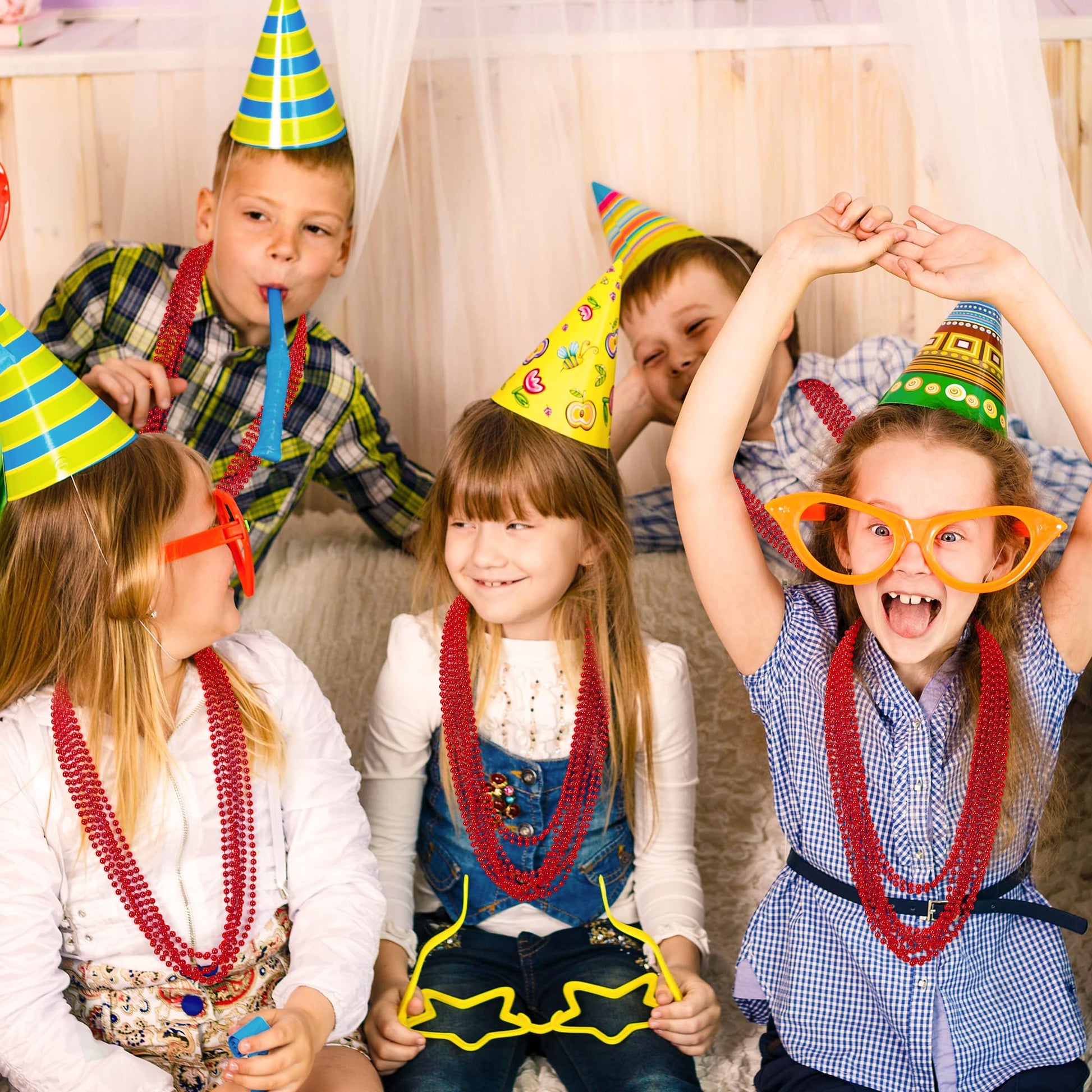 100 Pcs Christmas Beads Bulk, 33'' Valentines Day Beads Necklaces, Mardi Gras Beads Necklaces Bulk, Red Round Beads For Parade T