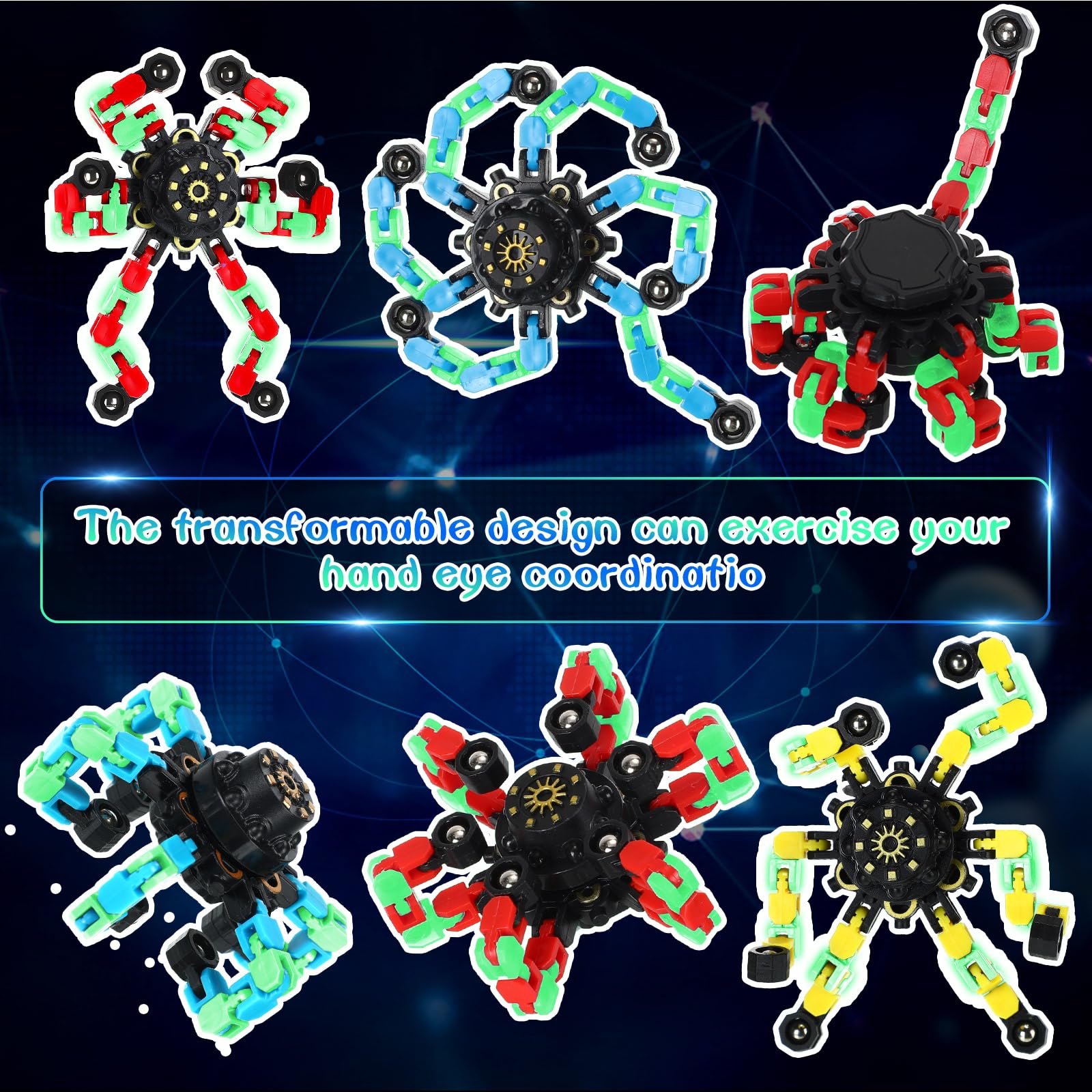 100 Pcs Funny Sensory Fidget Toy Bulk Transformable Chain Robot Finger Toys Fidget Spinners Stress Relief Fingertip Gyro Deformable Mechanical Spiral Twister Spinner Toy for mature-themed Kids ADHD (Glow)