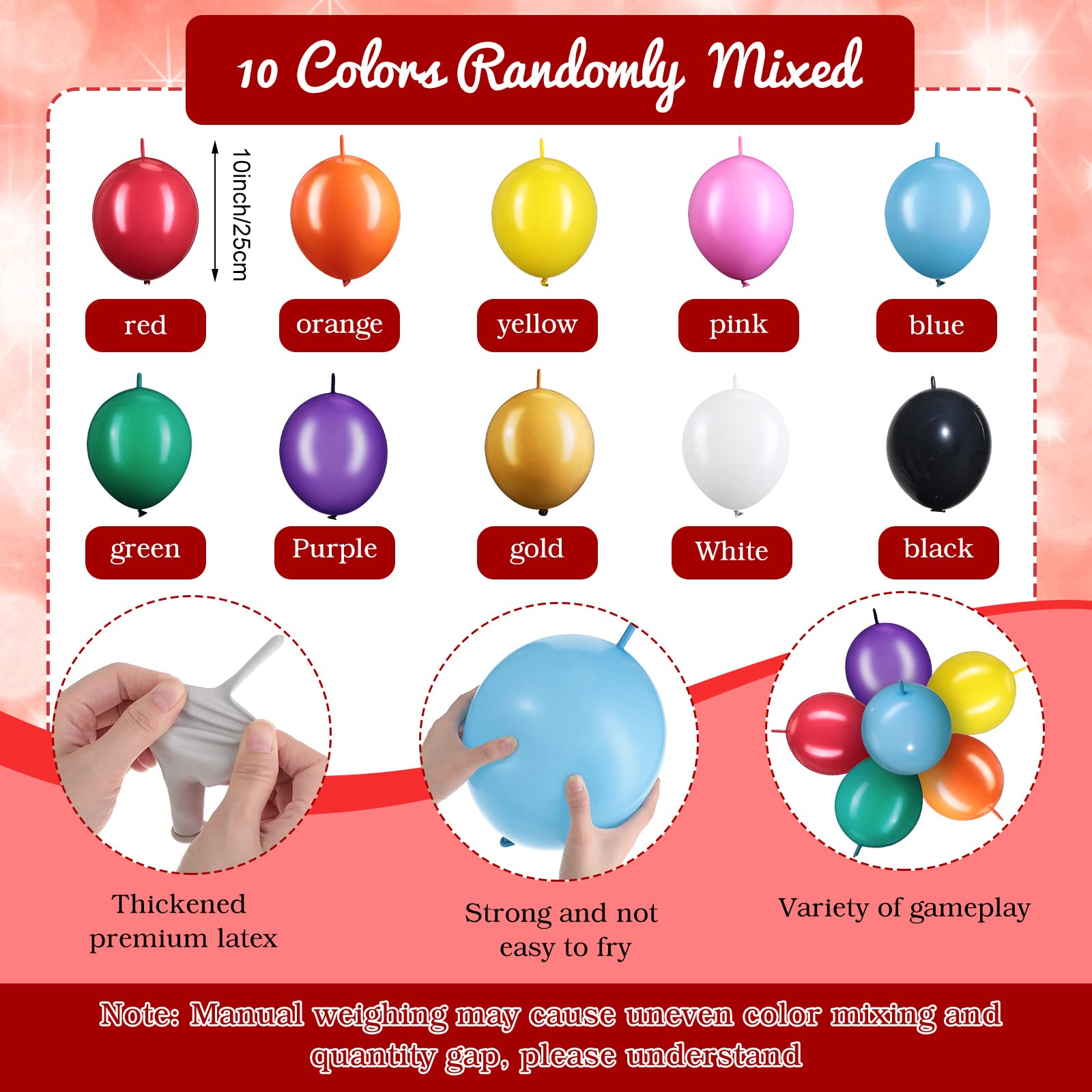100 Pcs Link Balloon Linking Balloon Latex Linkable Balloons Connected Wedding Party Decoration (Colorful, 10 Inch)