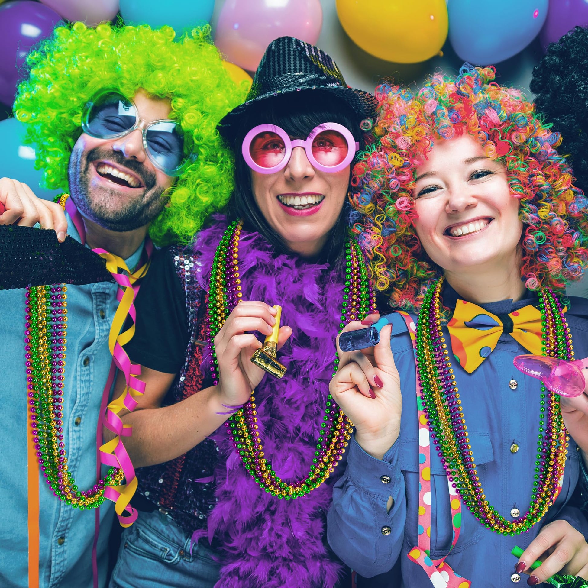 View compare100 Pcs Mardi Gras Beads, 33'' Mardi Gras Beads Necklaces Bulk, Round Purple Gold Green Beads Bulk, Parade Throw Accessories Set