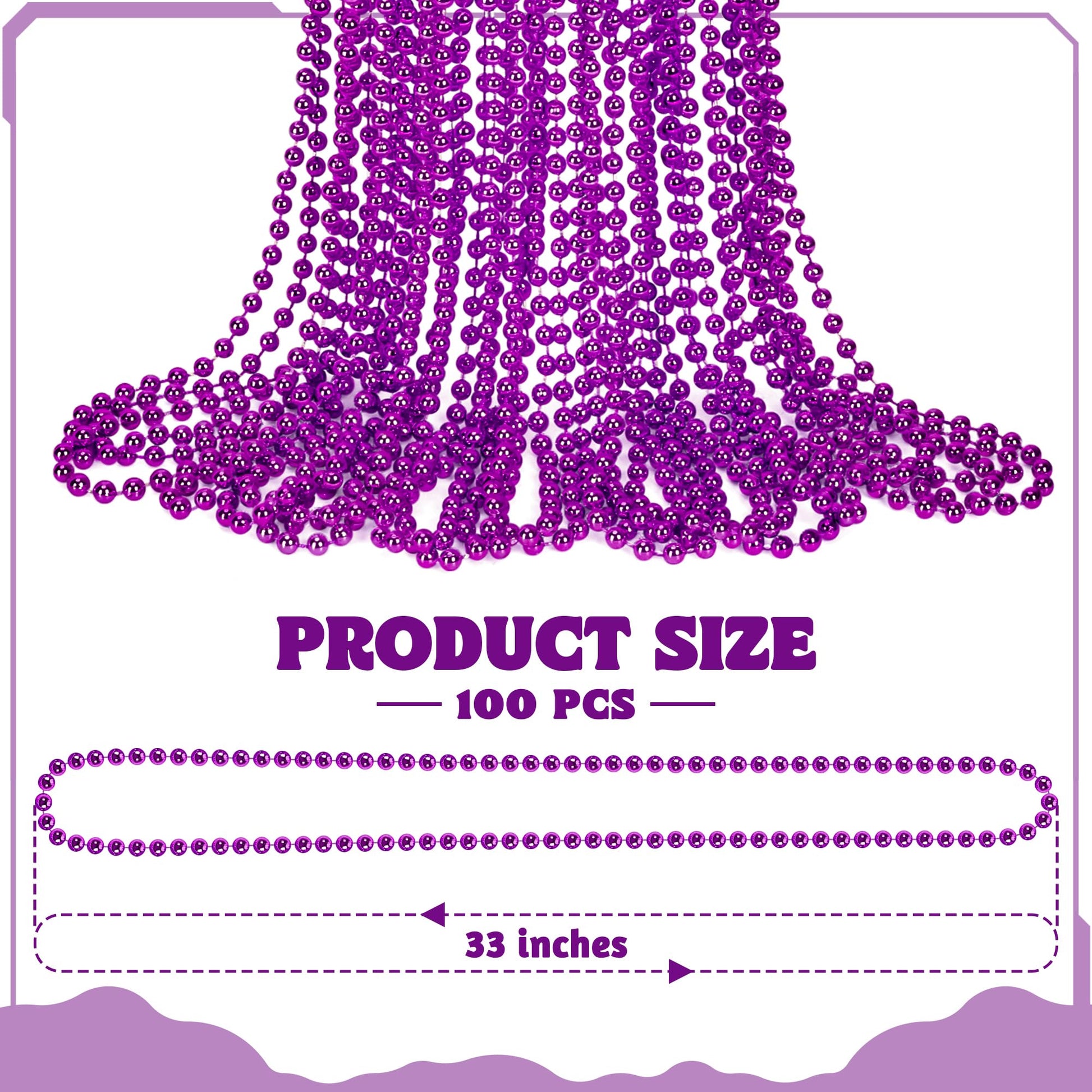100 Pcs Purple Beads Necklaces, Mardi Gras Beads Necklaces, 33'' Round Beaded Bulk Parade Throw Accessories Set, Beads Necklaces