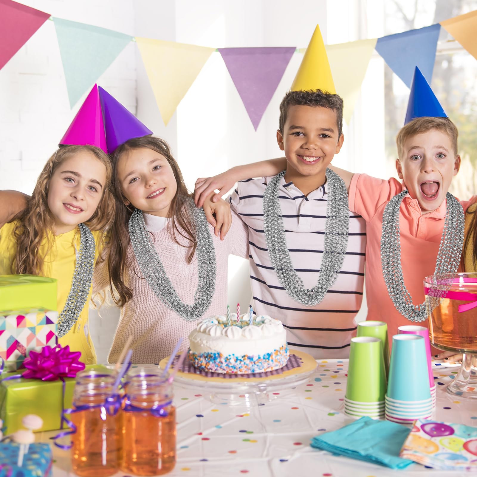 100 Pcs Silver Mardi Gras Beads, 33'' Silver Beads Necklaces, Christmas Beads Necklaces, Metallic Patriotic Beads Necklaces, Par
