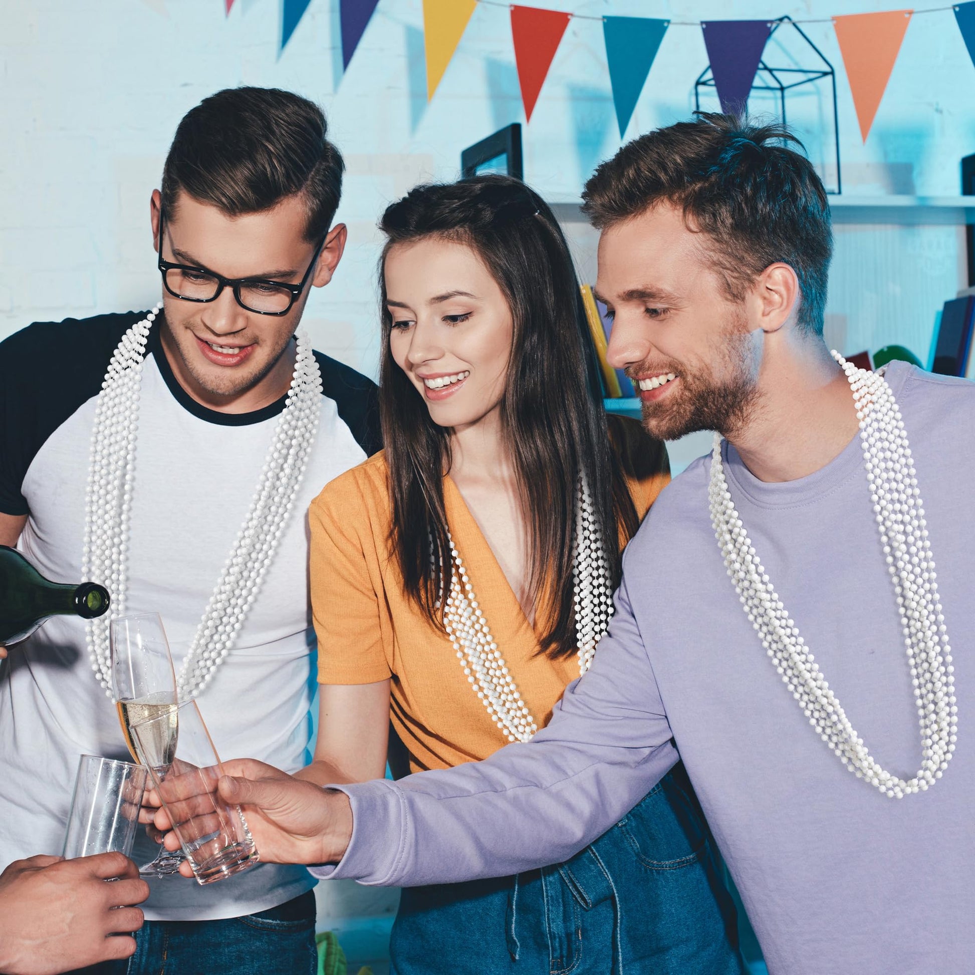 View compare100 PCS White Mardi Gras Beads Bulk, 33'' Mardi Gras Beads Necklaces, Round Beaded Accessories Set Parade Throw Beads Accessorie