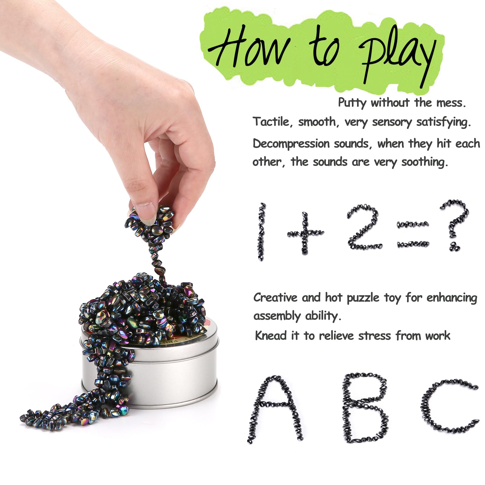• Q: What makes these desk toys different from regular fidget toys? A: Unlike standard fidget toys, Colourful Ferrite Crags feature a weak attraction design that allows for one-handed play. This design minimizes distractions and enables you to maintain focus on your work while still enjoying the tactile experience.