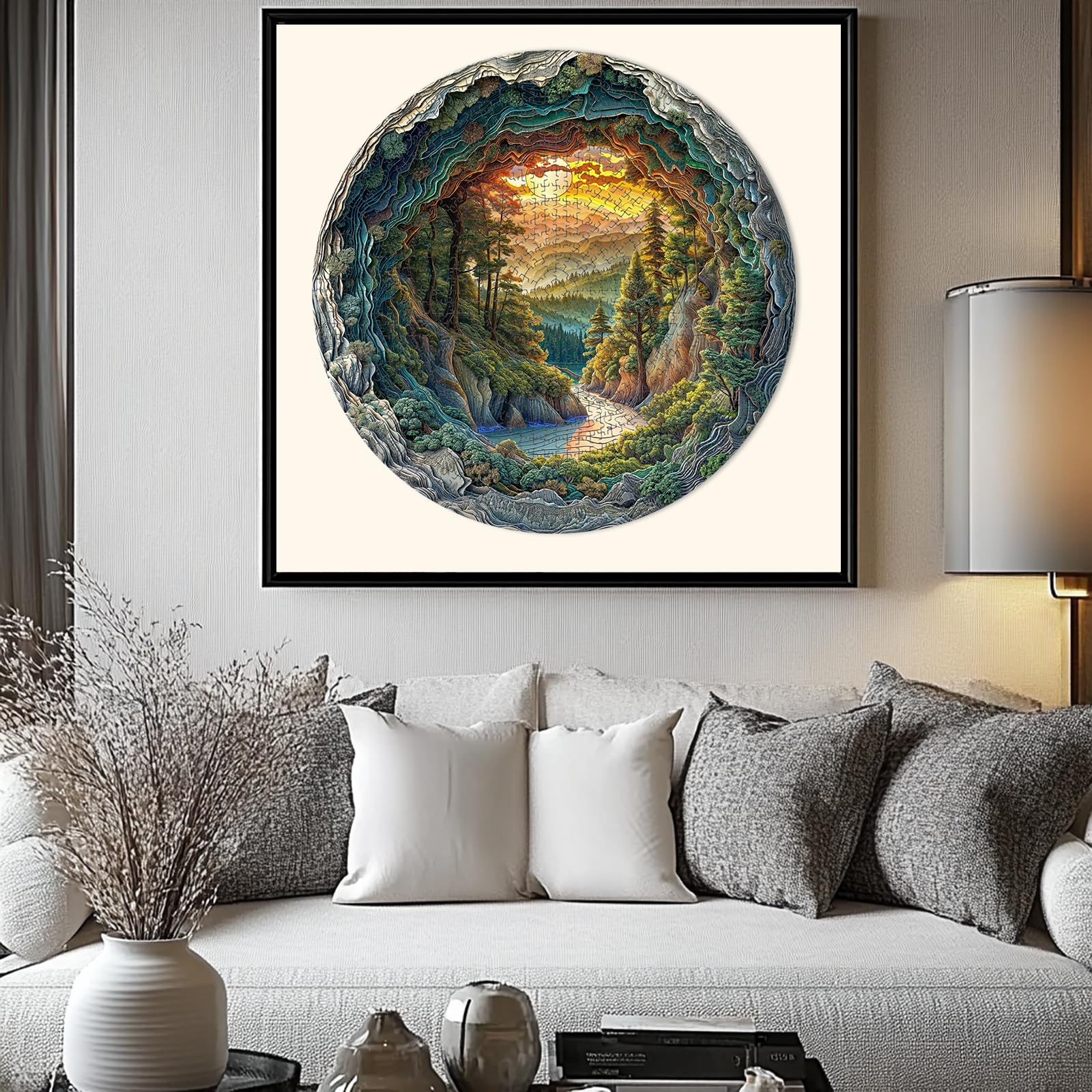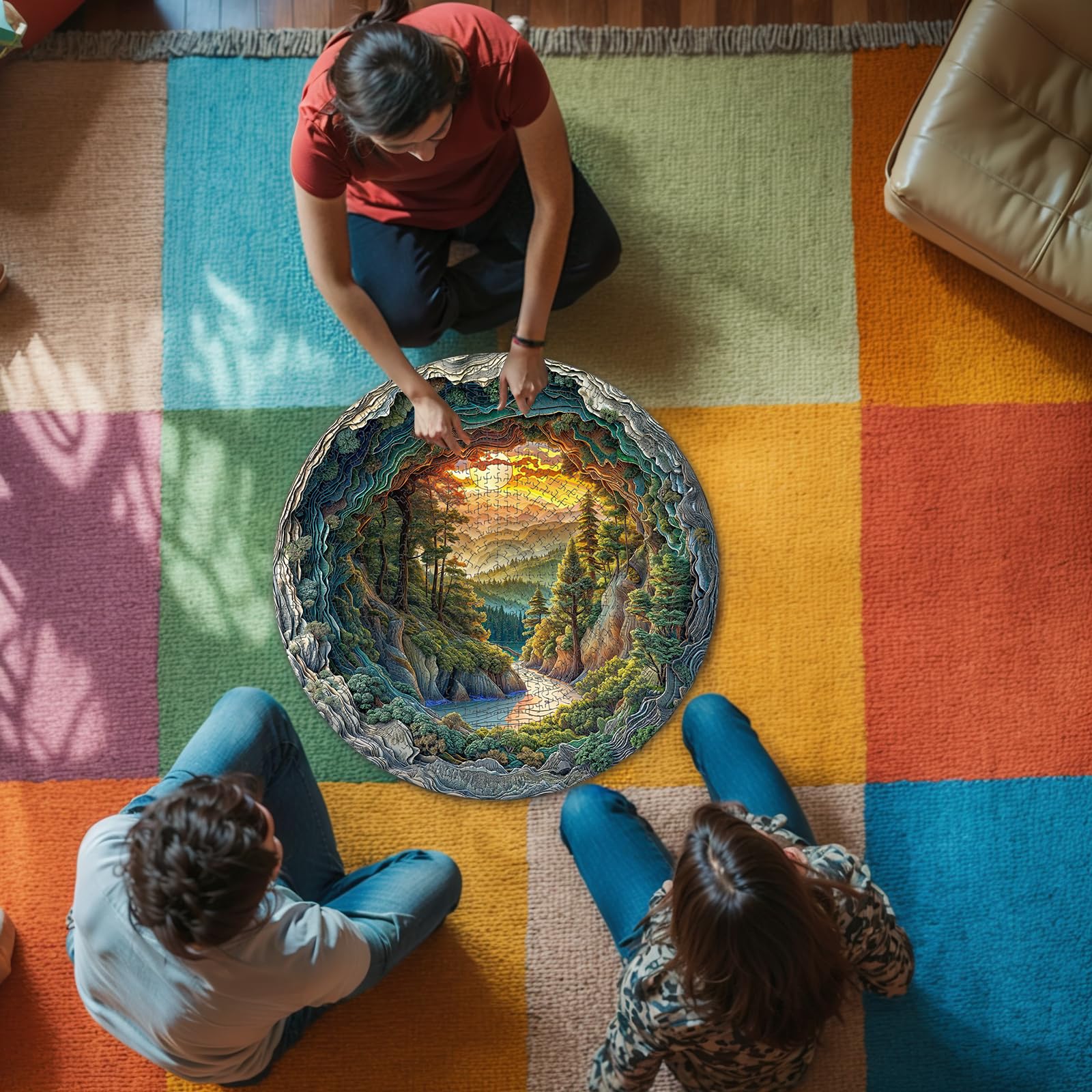 1000 Piece Puzzle for mature-themeds 3D Visual Cave Forest Jigsaw Puzzles for mature-themed 26.6 x 26.6in 1000 Pieces Flat Puzzle Christmas Birthday Party Home Decor Gifts for Family Friends