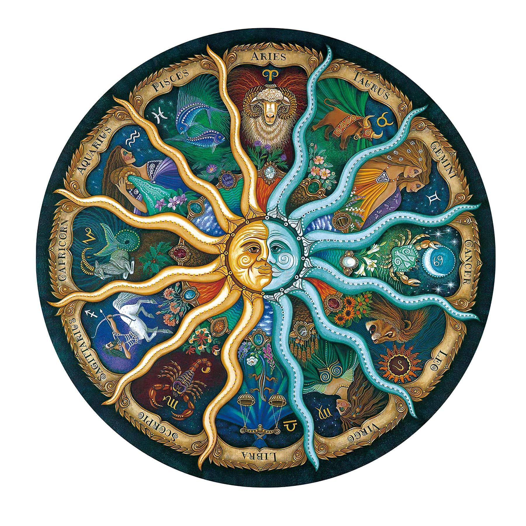 Looking For A Puzzle That Will Transport You Into The Mystical Realms Of Astrology? Look No Further Than Our Mystical Zodiac Horoscope 1000-Piece Jigsaw Puzzle. Whether You'Re A Puzzle Enthusiast Or A Beginner, This Mind-Bending Puzzle Will Captivate You From Start To Finish. Created With Utmost Attention To Detail, Each Piece Of This Round Puzzle Fits Together Flawlessly To Form A Stunning Astrological Masterpiece. Challenge Yourself As You Piece Together The Intricate Patterns And Symbols Representing Each Zodiac Sign. Allow The Calming And Meditative Process Of Puzzle-Solving To Ease Your Mind And Reduce The Stresses Of Everyday Life. This Zodiac Horoscope Puzzle Is Not Just For Adults, But Also For Kids Who Want To Engage In A Fun And Educational Activity. It Stimulates Their Imagination, Concentration, And Observation Skills, While Also Helping To Enhance Memory And Focus. Unleash Your Inner Stargazer And Embark On A Celestial Journey With Our Mystical Zodiac Horoscope 1000-Piece Jigsaw Puzzle. Get Ready To Be Amazed By The Magic Of The Stars And The Satisfaction Of Completing This Mesmerizing Puzzle. Order Yours Today And Experience Mind-Bending Fun Like Never Before!