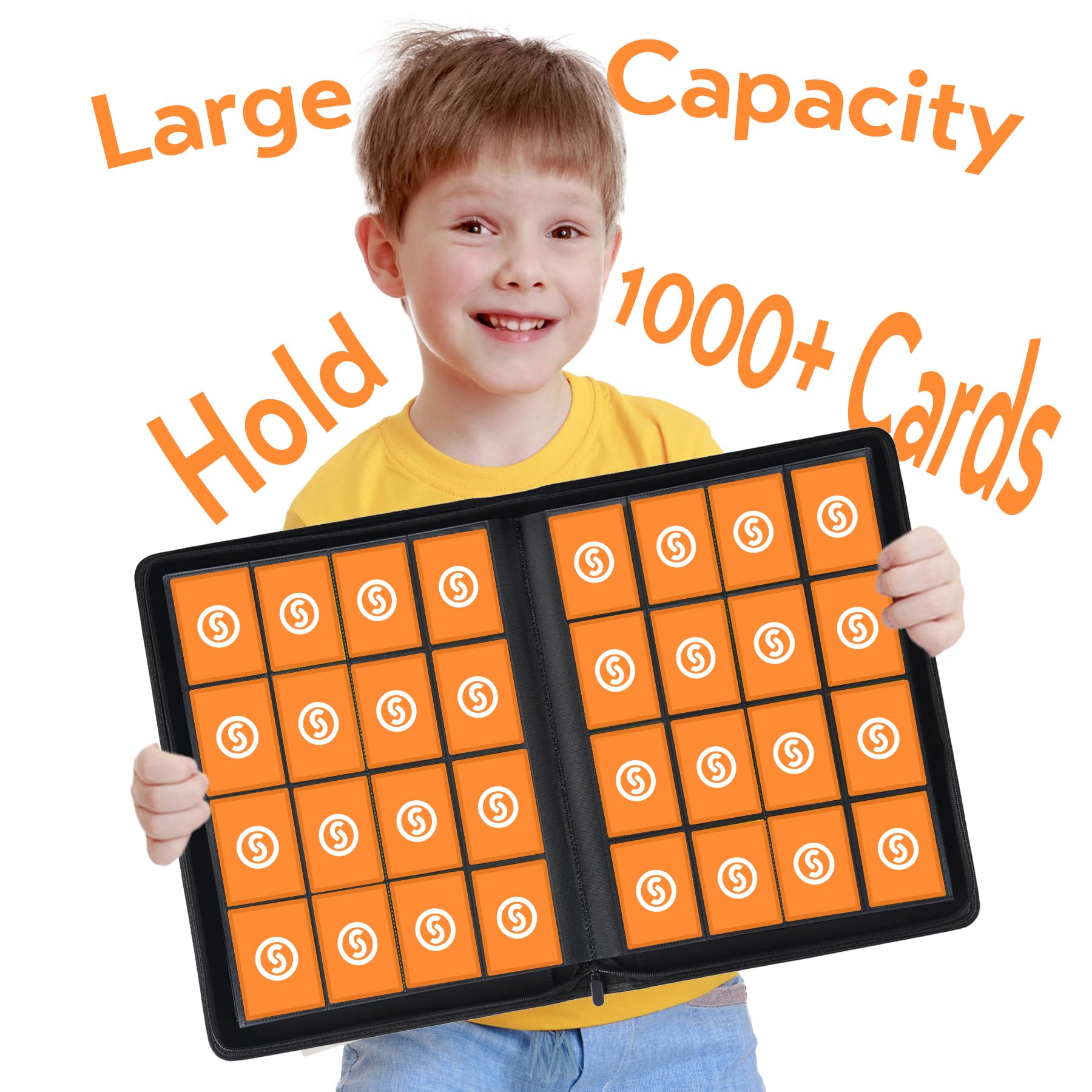 1000+ Pockets Trading Card Binder enhanced 16 Pocket Card Binder Ringless Side Loading Collection Album Holder Folders for MTG TCG Game Cards & Sports Cards (Black)