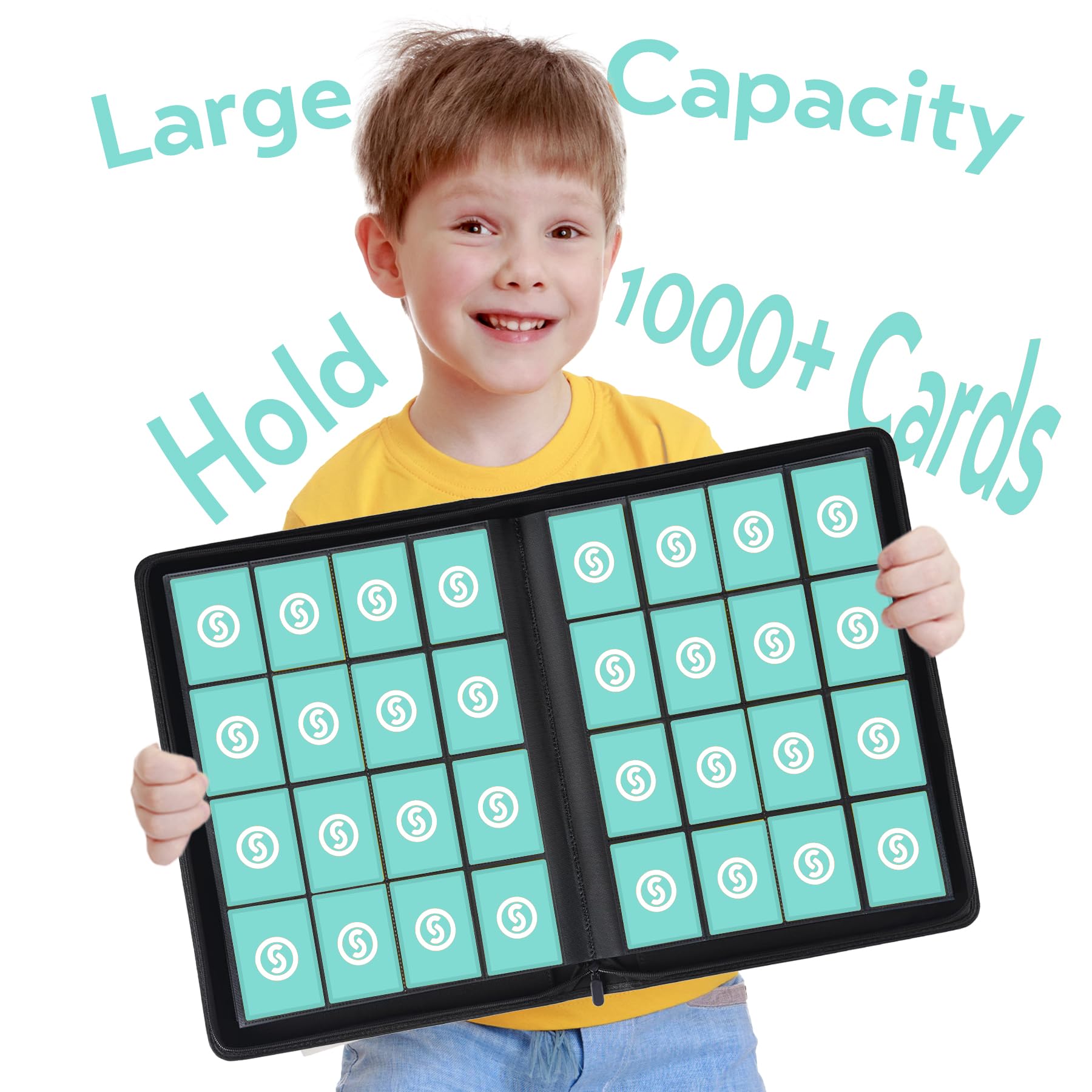 1000+ Pockets Trading Card Binder enhanced 16 Pocket Card Binder Ringless Side Loading Collection Album Holder Folders for MTG TCG Game Cards & Sports Cards (Blue)