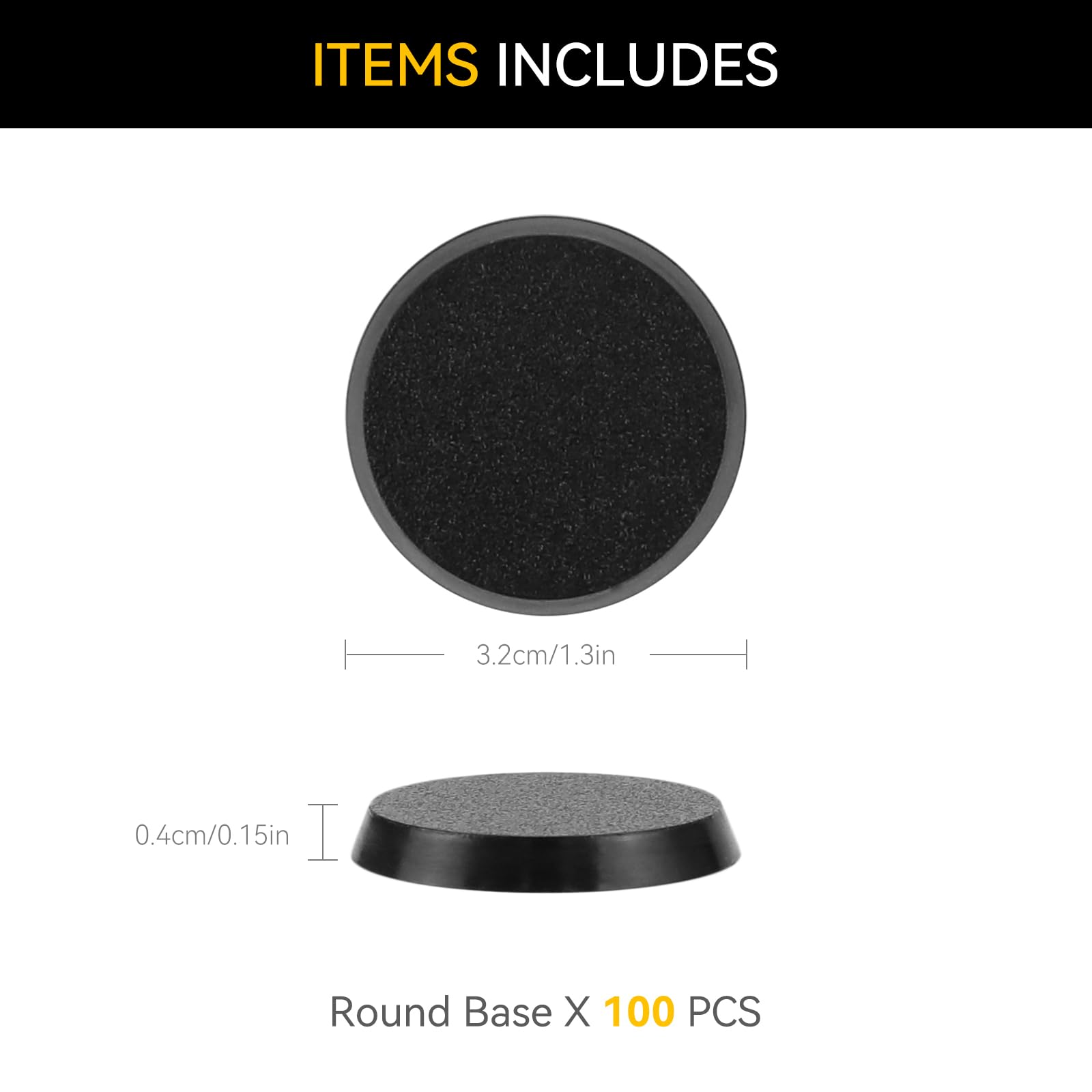 100Pcs 32Mm/1.26Inch Textured Plastic Black Round Miniature Bases, Model Base For Gaming Miniatures Or Wargames Table Top Games