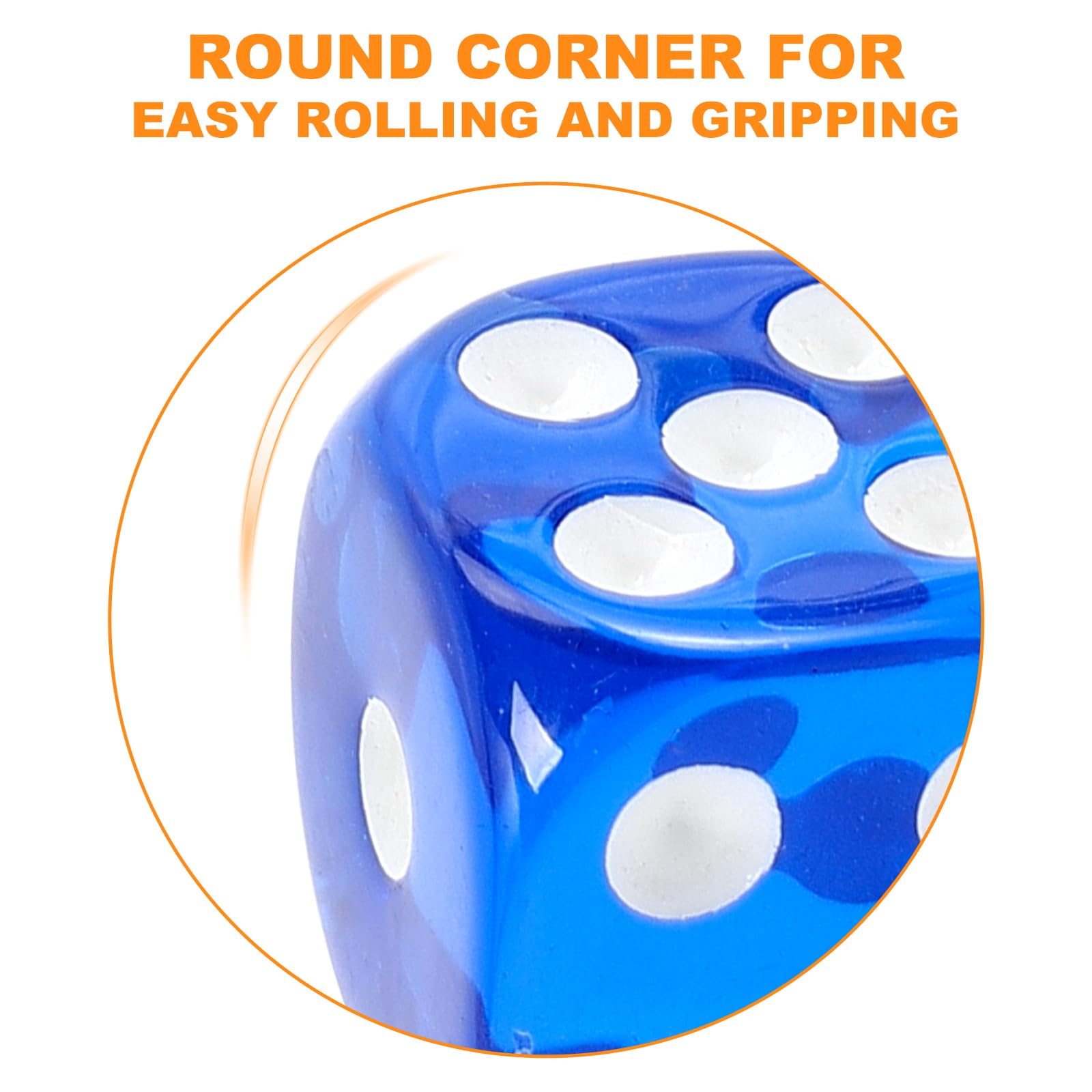 - Q: What is the size of each die in the 100Pcs Colored Dice Set? A: Each die in the 100Pcs Colored Dice Set measures 16mm, making them standard size for various games.