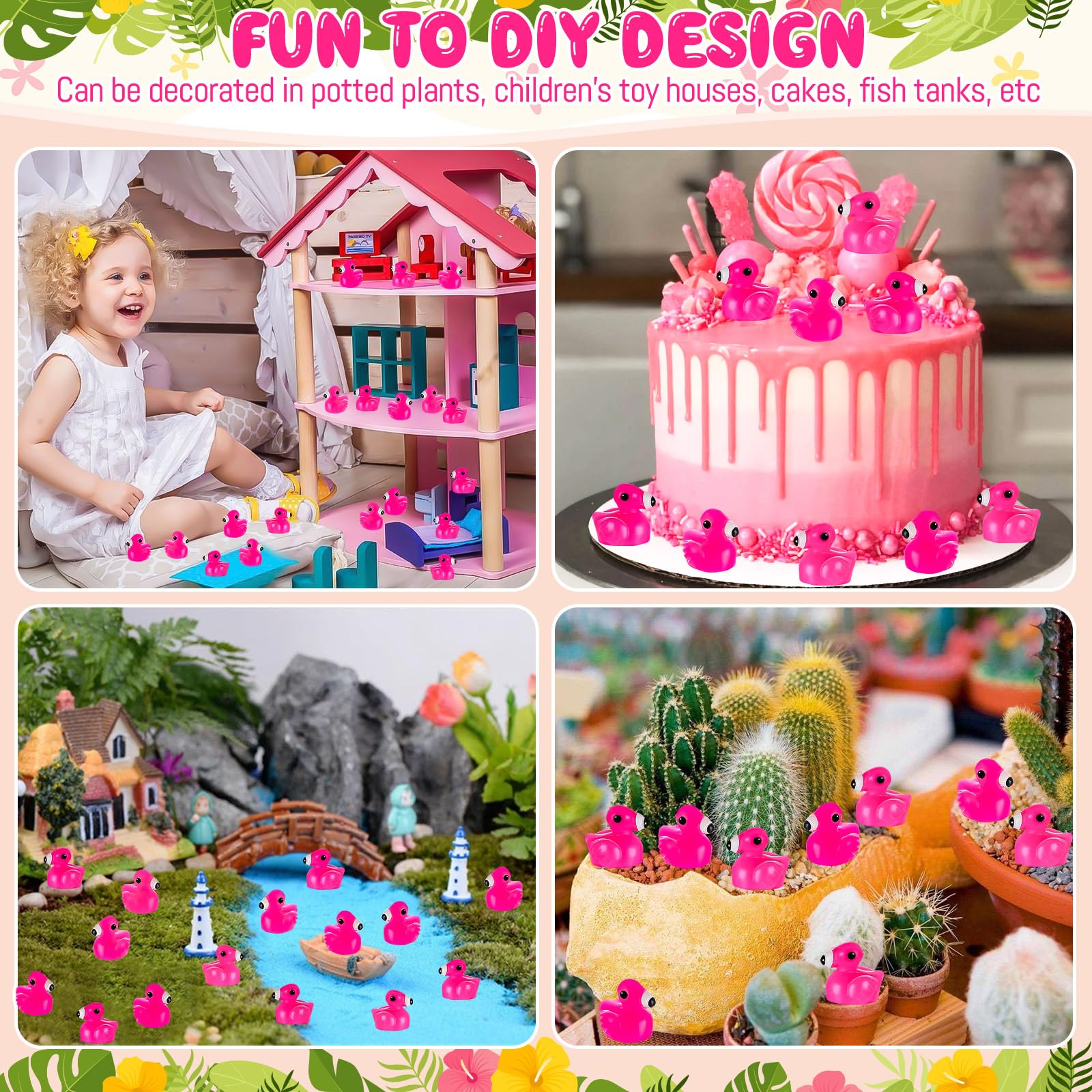 100pcs Mini Resin Flamingos Ducks - Cute Tiny Pink Flamingos Ducks to Decorate for Garden Lawn, Cake, Yard, Fairy Garden, Dollho
