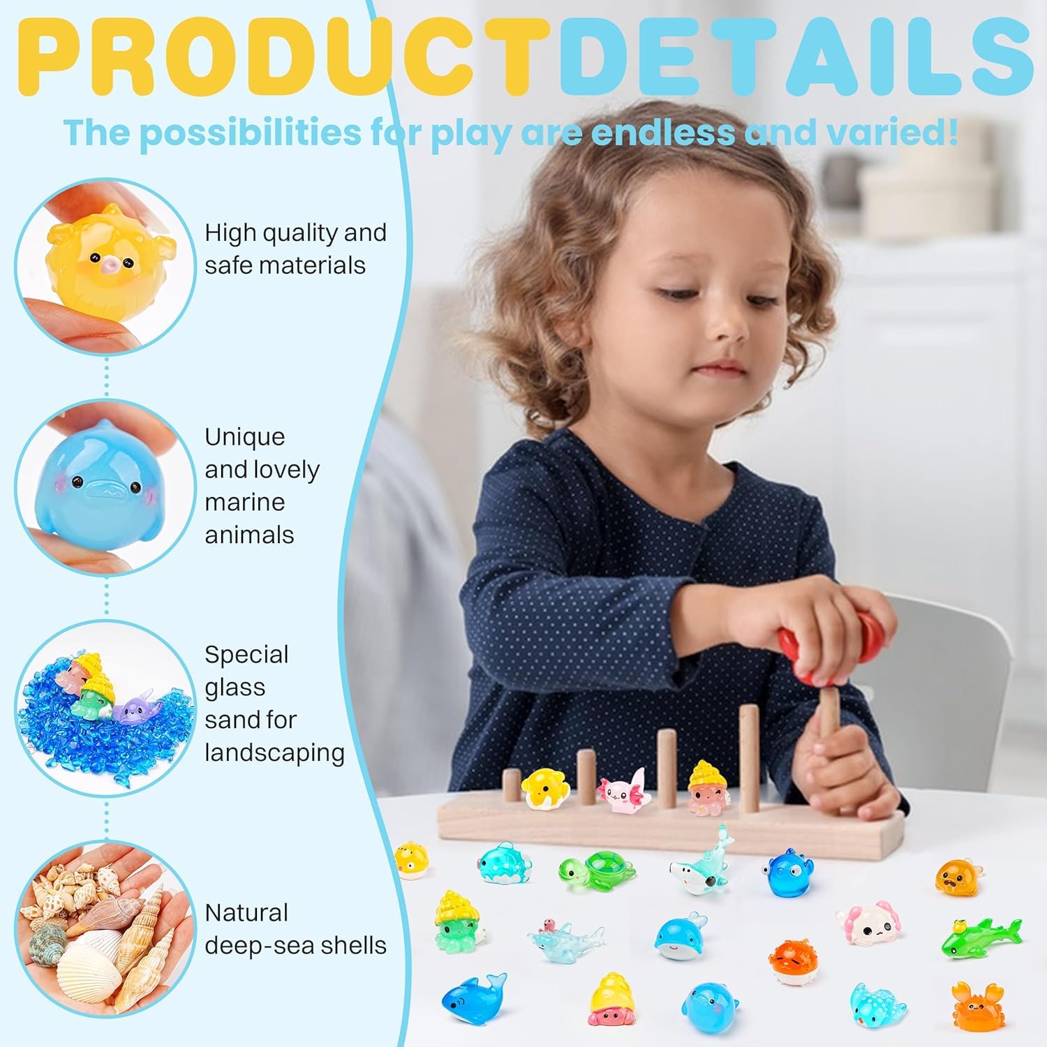 Creative Suit Perfect for curious young minds and ocean enthusiasts 78 exquisitely detailed figurines of various marine creatures 10 silver DIY brooches 10 color DIY hair clips 100 DIY special dispensing Creativity Our Ocean Mini Figurines Toy Set is more than just a collection of toys; it's an educational journey. By engaging with these figurines, children can learn about marine biology, the diversity of ocean life, and the importance of environmental conservation. This hands-on approach to learning helps develop cognitive skills, creativity, and a love for nature. Multifunction Whether used for playtime, educational purposes, or as a beautiful display, this set is designed to captivate and inspire. It's an ideal gift for birthdays, holidays, or any special occasion, offering a unique blend of fun and education that will be cherished by kids and collectors alike. Dive into the wonders of the ocean with our Ocean Mini Figurines Toy Set and create unforgettable underwater adventures!