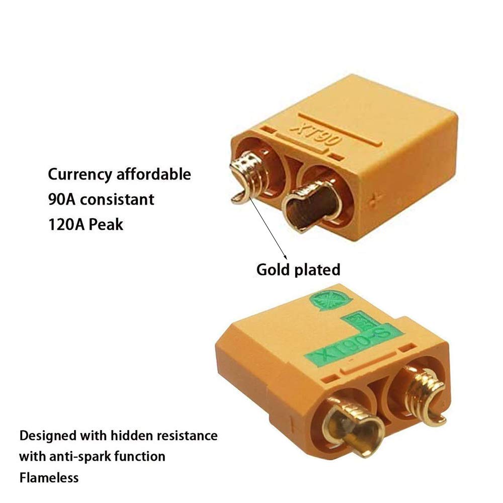 - Q: How does the anti-spark design of the XT90S connectors work? A: The anti-spark design of the XT90S connectors integrates a resistance that prevents sparks when connecting or disconnecting power, thereby protecting the connector and enhancing safety.