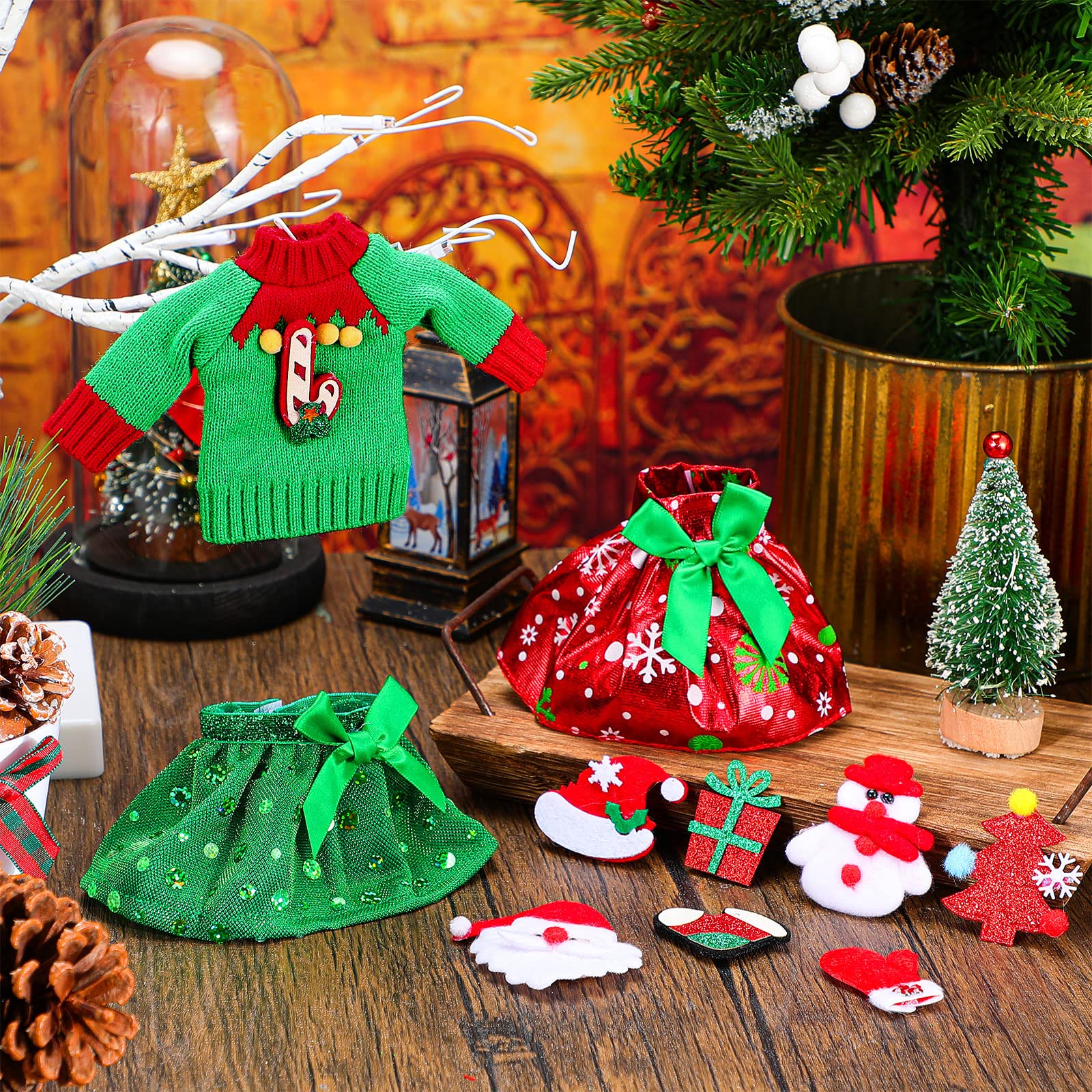 11 Pcs Christmas Elf Doll Clothes Accessories Include Green Red Sweater Skirts Attachable Santa Decals Christmas Elf Doll Outfit Clothes Gift For Xmas Holiday Decorations