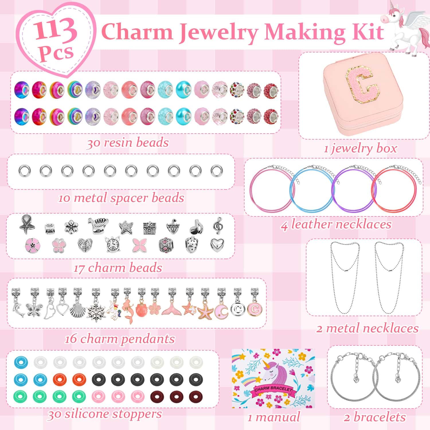 110 Charm Bracelet Making Kit, Jewelry Making Kit for Girls DIY Bead Necklace Kit with Initial Bracelet Box Unicorns Crafts Arts