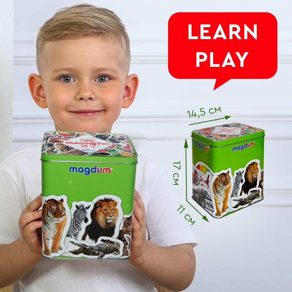 110 Fridge Magnets For Toddlers In Gift Tin Box Kids Magnets For Fridge - Toddler Magnets For Refrigerator - Magnetic Animals - Fridge Magnets For Kids - Animal Magnets - Toddler Fridge Magnets